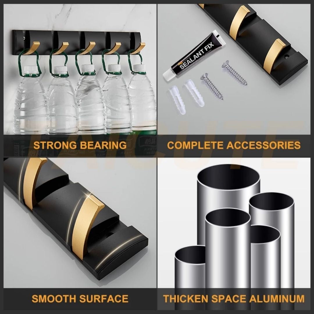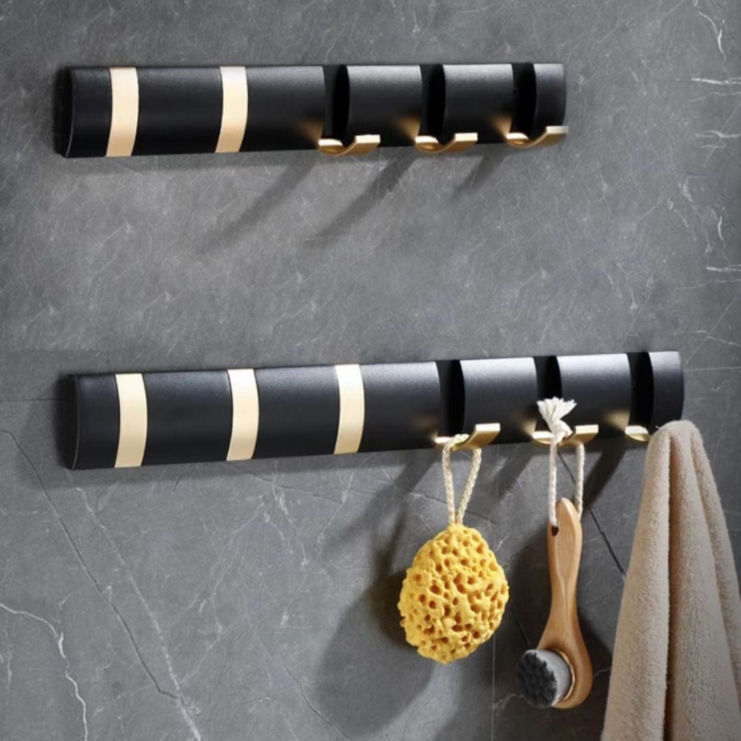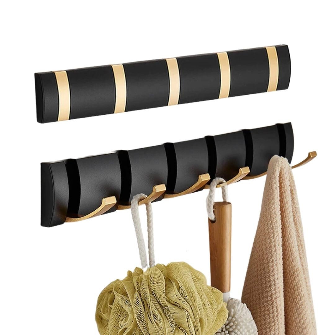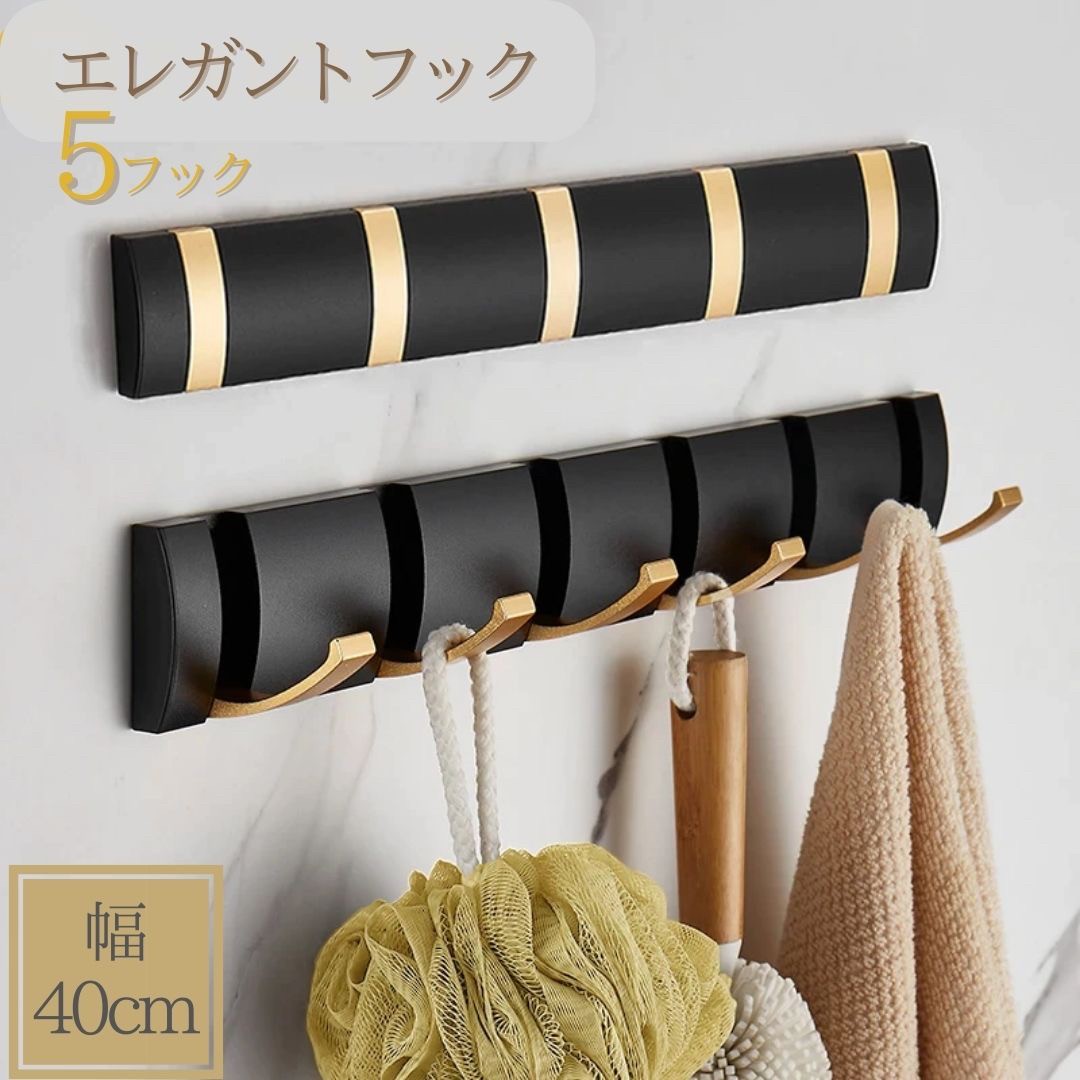 インテリア雑貨 その他 | ブラックゴールド 5連折りたたみウォールフック - キッチン・バスルーム用