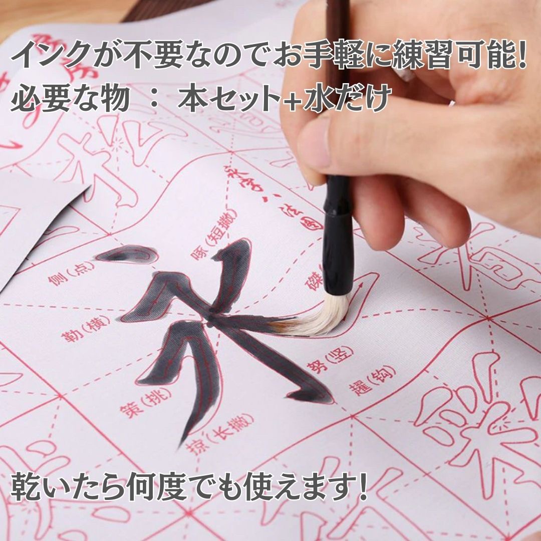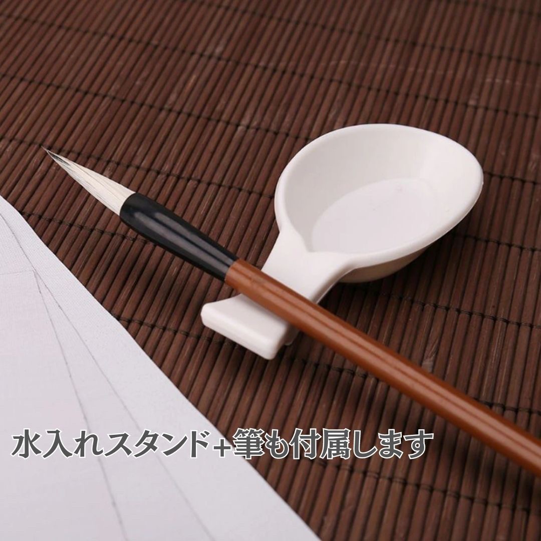 習字を練習するのに最適な水で何度でも書ける練習用セットです。このセットには、専用の紙と筆と水入れがあります。水を使って何度でも練習することができます。