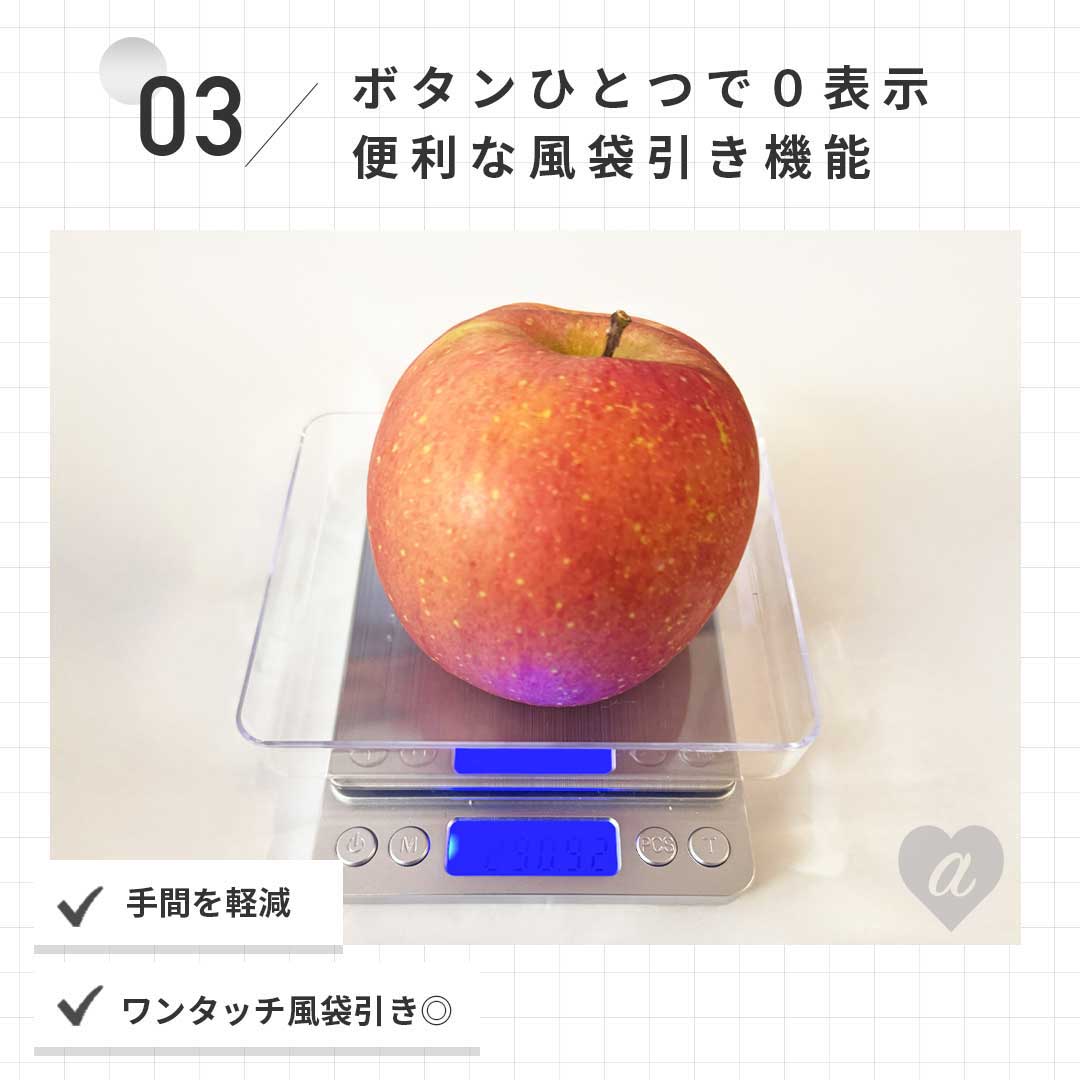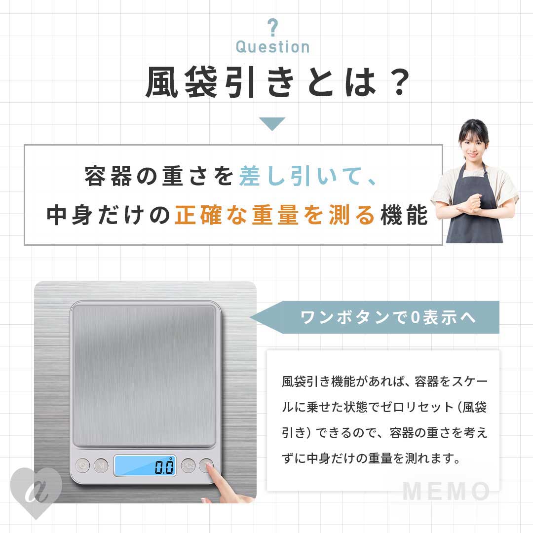 風袋引き機能、カウンティング機能、自動電源オフ機能