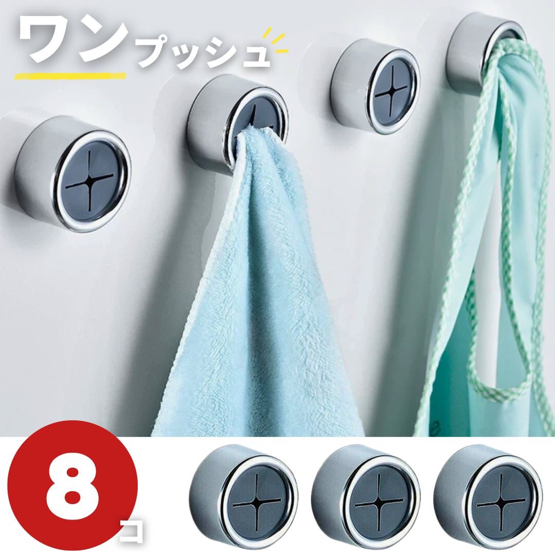 インテリア雑貨 その他 | メタリックプッシュタイプ タオルハンガー 8個セット - キッチン・バスルーム用