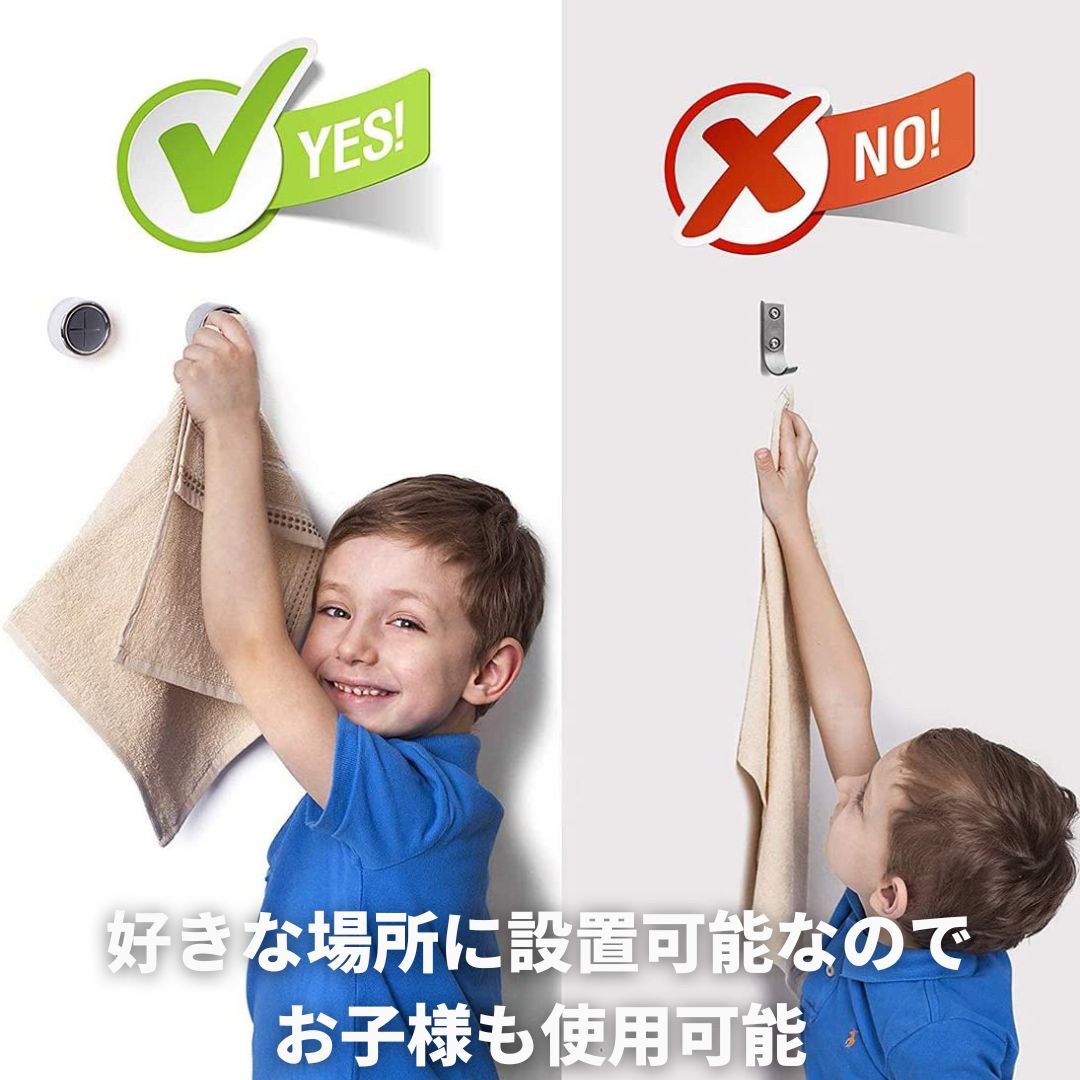ネジ不要、複雑な工事不要で、背面に強い粘着力のシールが付いており、保護シールを剥がすだけで取り付け可能で、挟んだタオルの落ちる心配はありません。滑らかな表面で普通にご使用いただけます