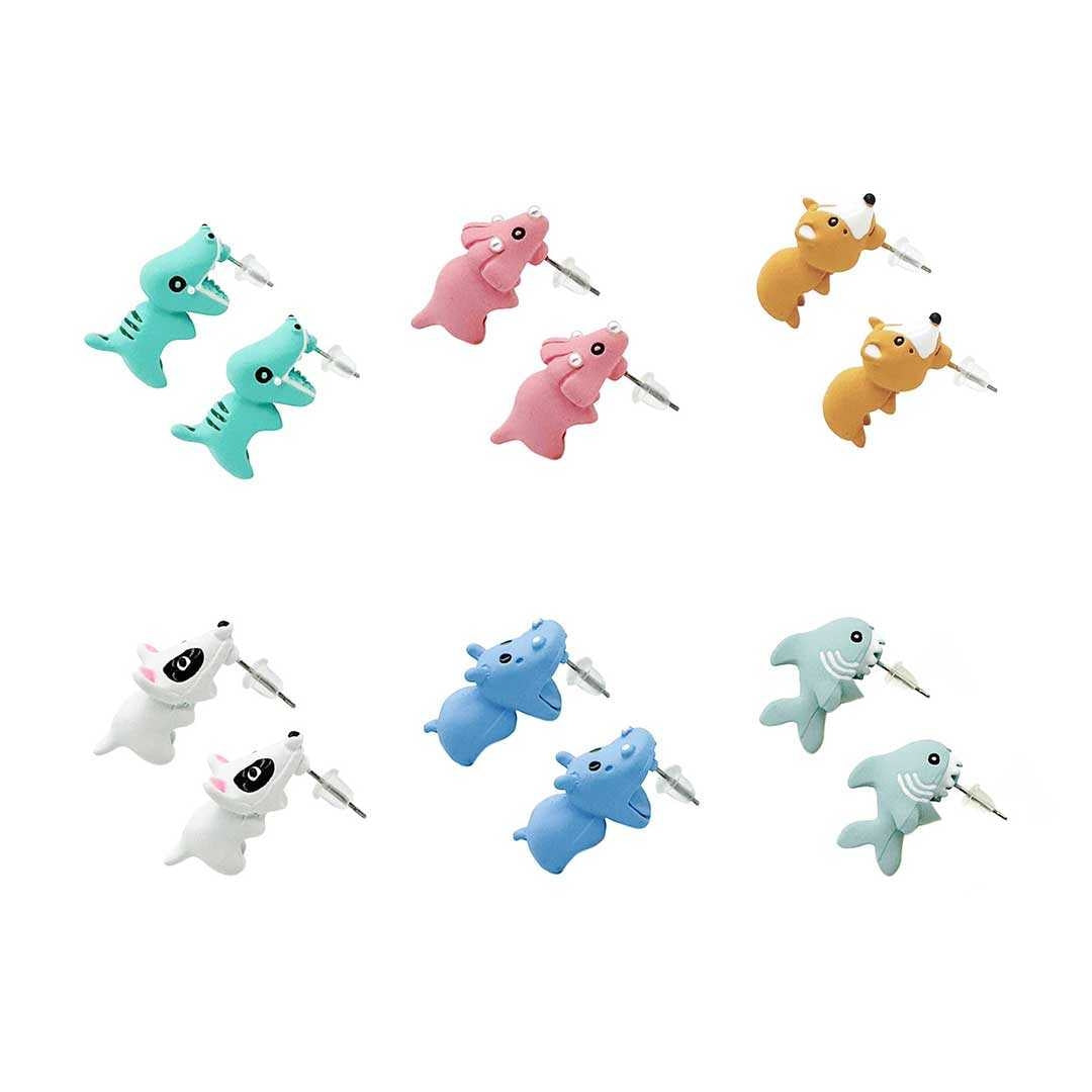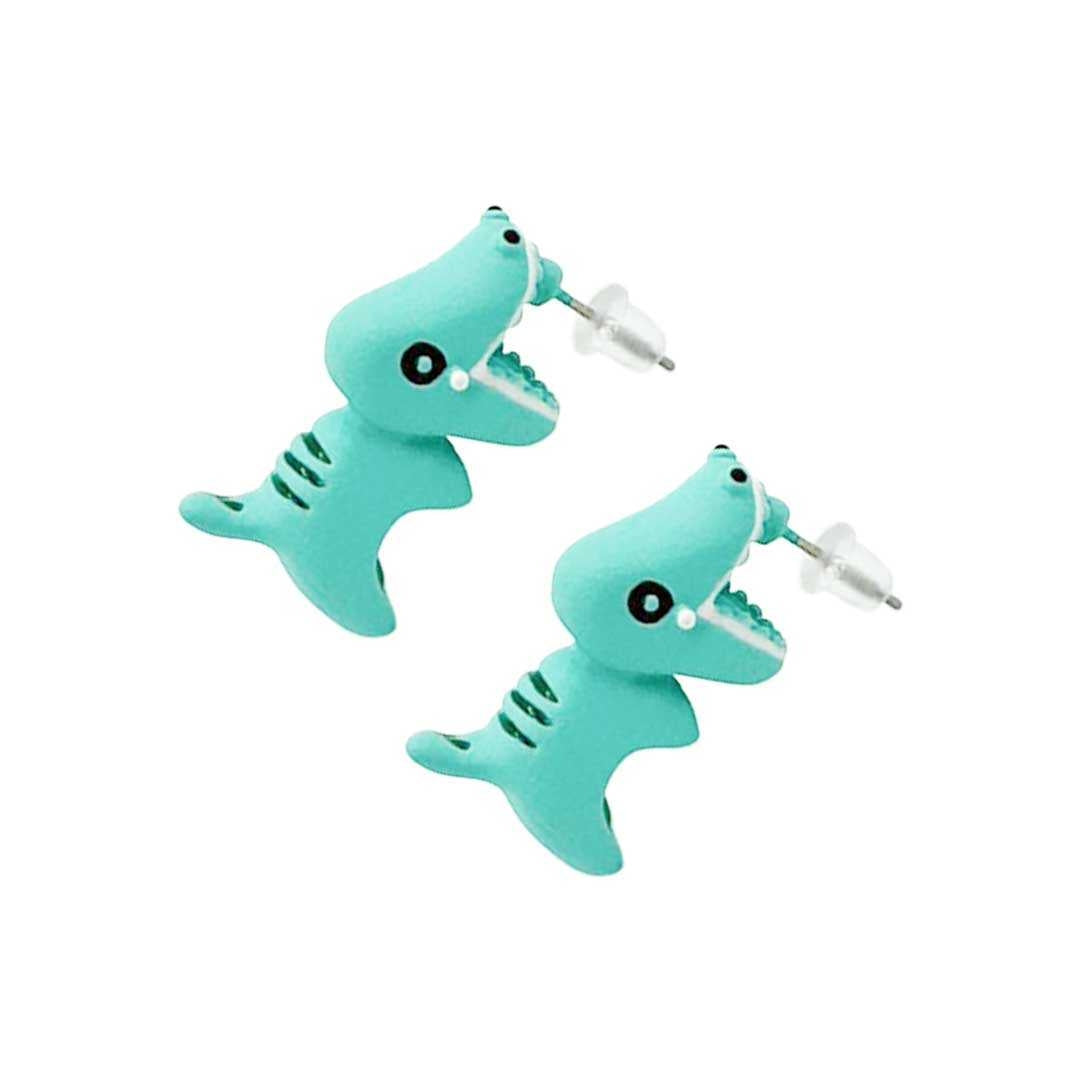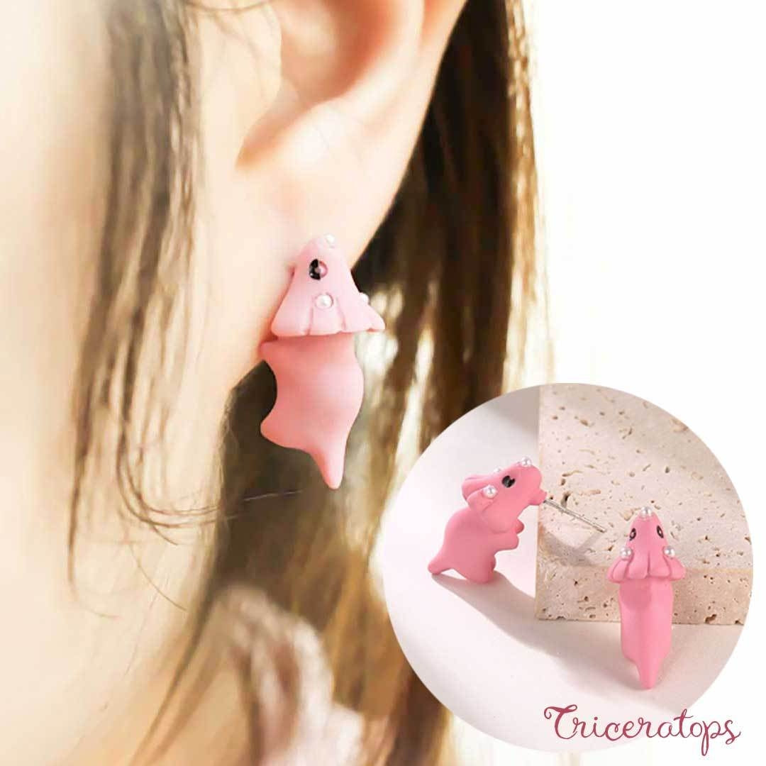 装着するとまるで恐竜や犬、サメ、カバが耳に噛み付いたように見える可愛くてユニークなフィギアピアスです。手作りされたフィギアのような立体感のある可愛いピアス