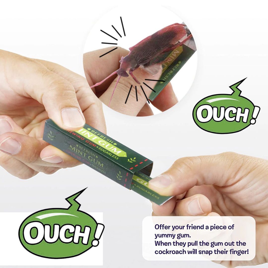 ガムを取り出すと、ガムケースの中に潜んでいるゴキブリが飛び出し、かなり派手に驚きその後に、盛り上がって楽しい気持ちになって笑っていただけます