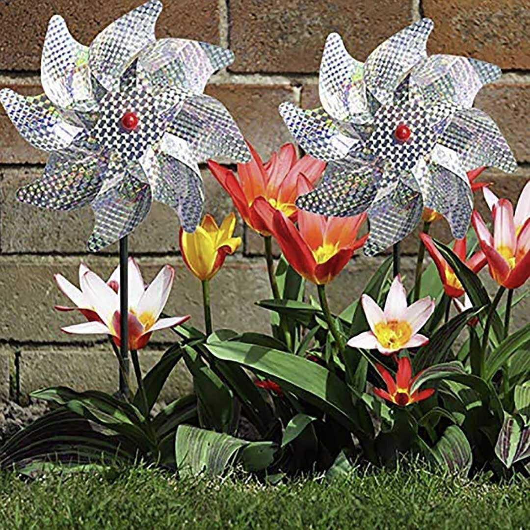*こちらの商品は、風が吹いたり動くと反射しながら回転するので鳥よけ効果がございます