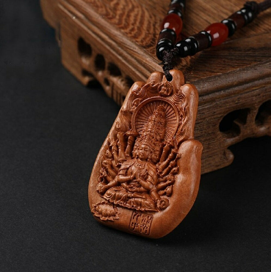 金運 開運 グッズ | 木彫り観音像ネックレス - 縁起物・開運祈願アクセサリー