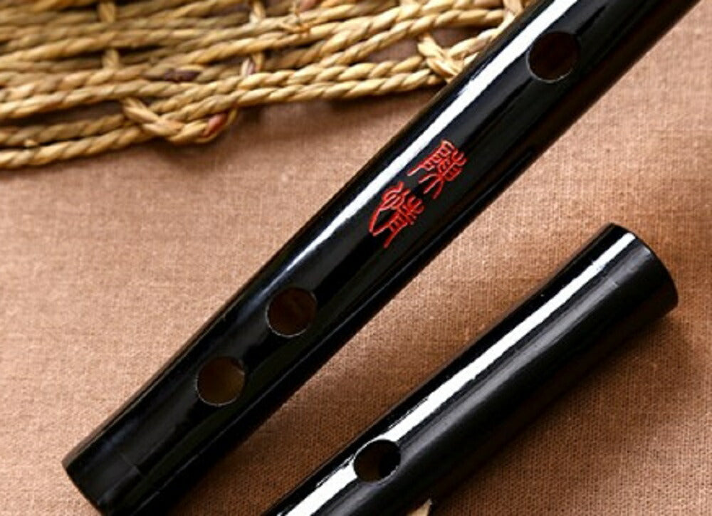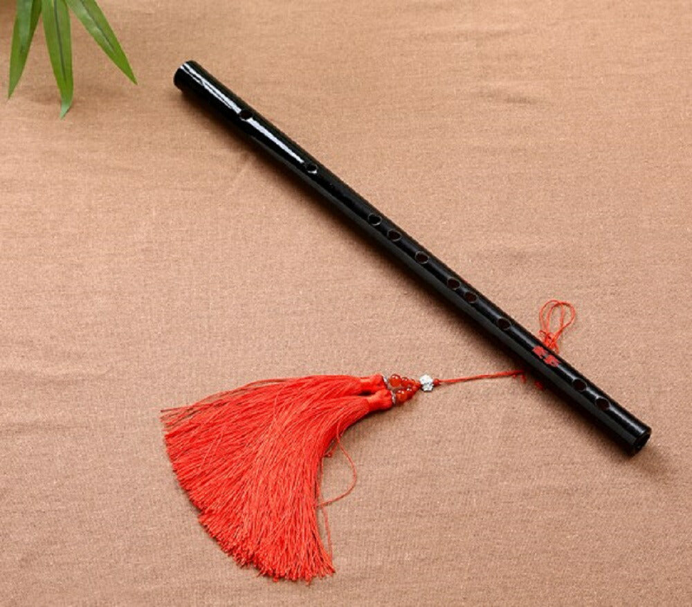 笛は竹製で、上に吹き穴と膜穴があり、空気を通す穴が二つ(あるいは四つ)あり、指で押さえる穴が六つある。