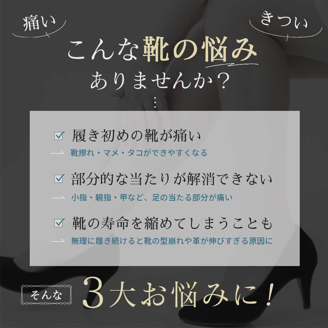 靴が小さく、かかとやつま先、靴擦れなどの痛みでお困りの方を、助けてくれるのがシューズストレッチャーです!