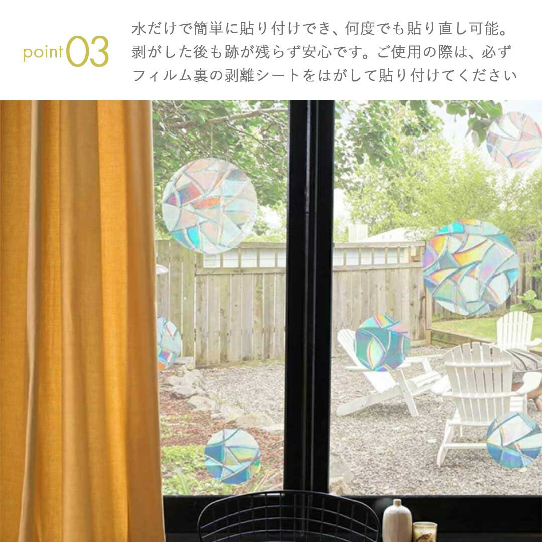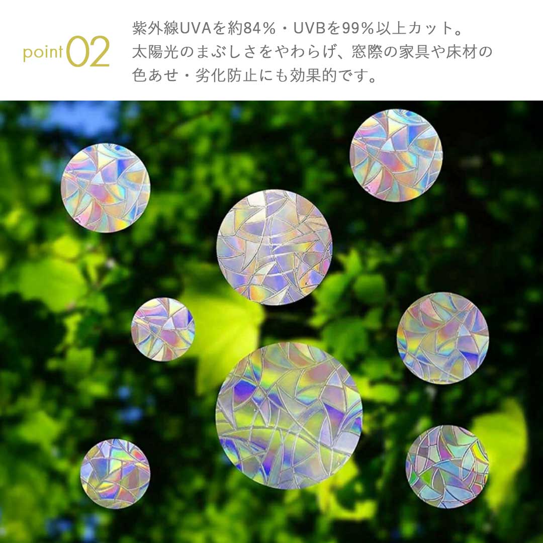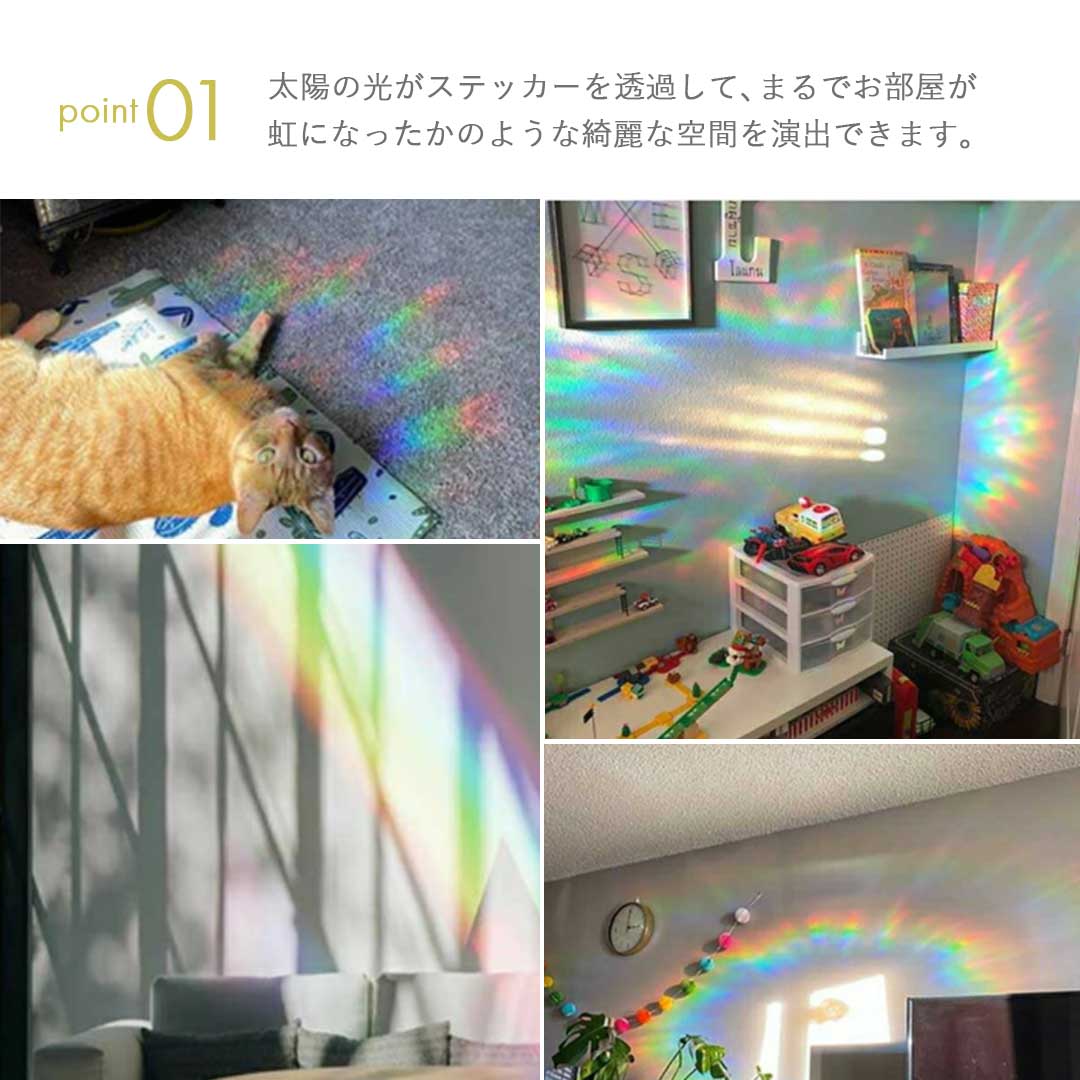 太陽の光がステッカーを透過してまるでお部屋が虹になったかのような綺麗な空間を演出できます