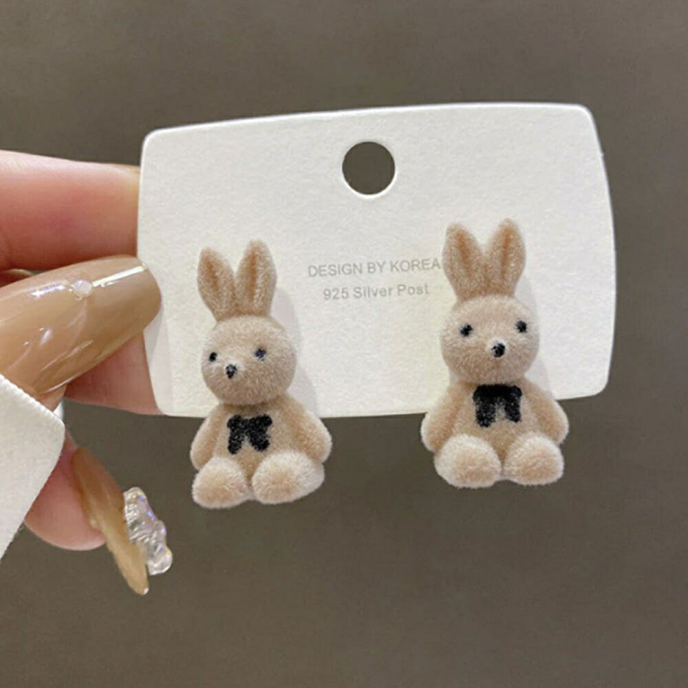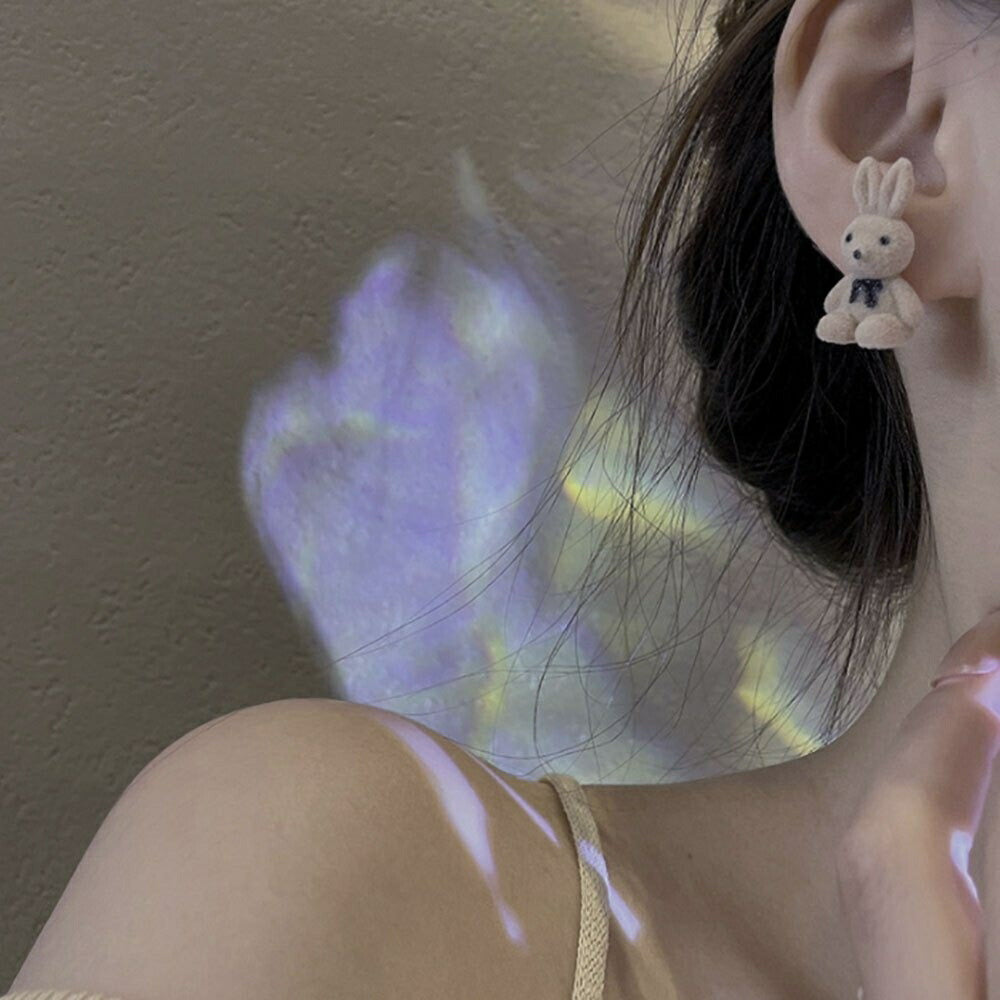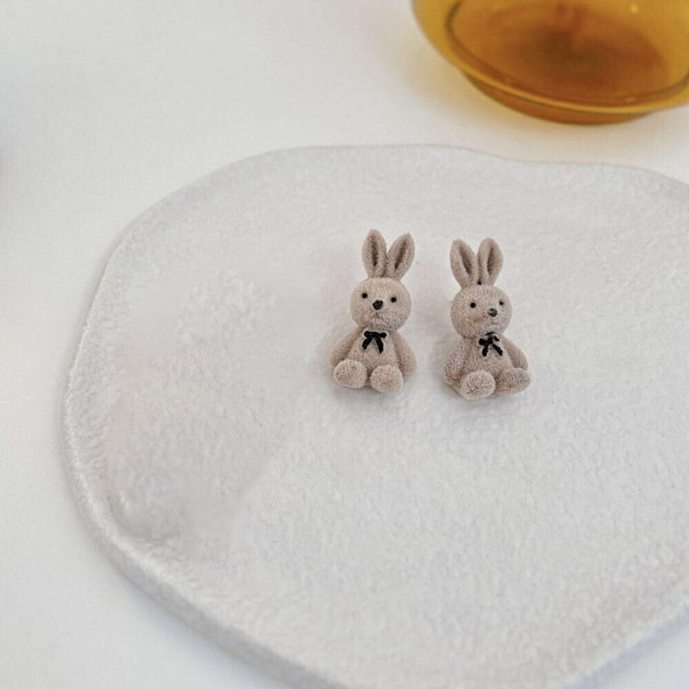かわいいフロッキーなウサギちゃんが印象的なファッションピアスです。フロック素材ならではの落ち着いた色合いと立体感のあるモチーフが可愛さの中にもフェミニンな雰囲気を感じさせてくれます。見る人の目を引く個性的なデザインは、ジュエリーを主役にした着こなしにもピッタリで、大人の遊び心を見せたい時にもお勧め。細部まで精巧に象られたウサギデザインです。フォーマルから休日までどんなシーンにも合います