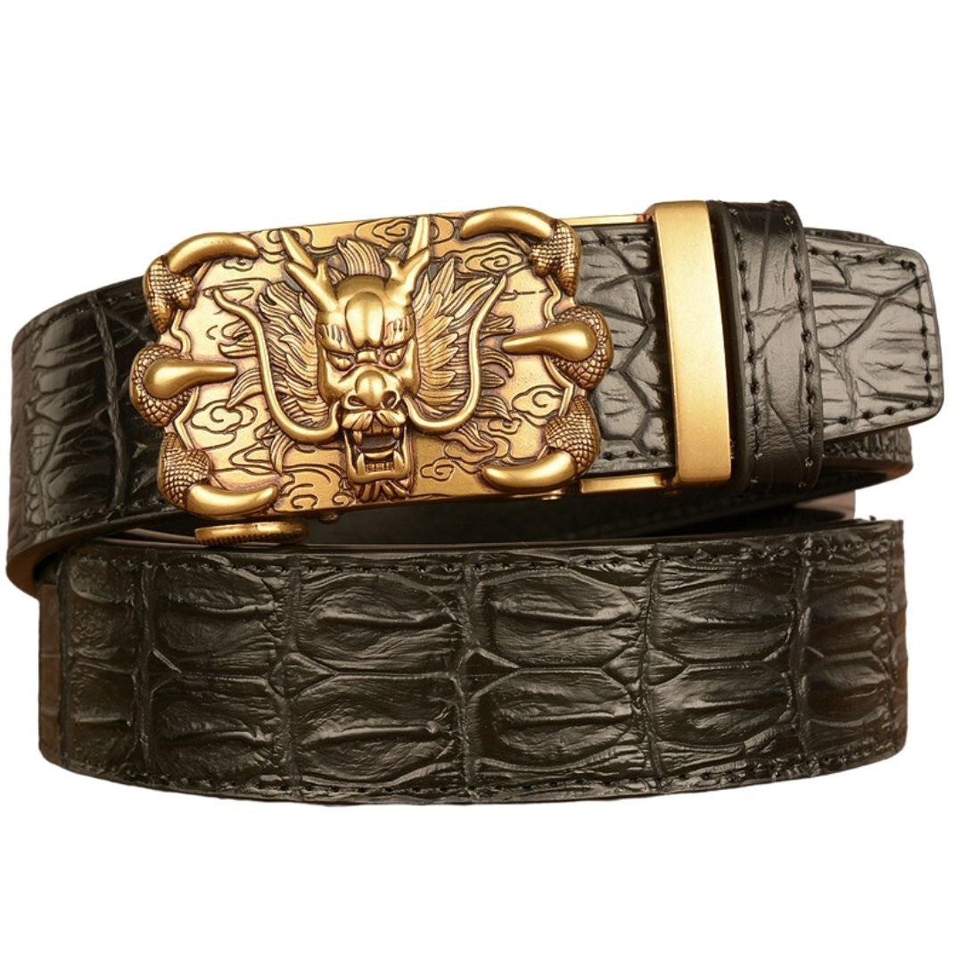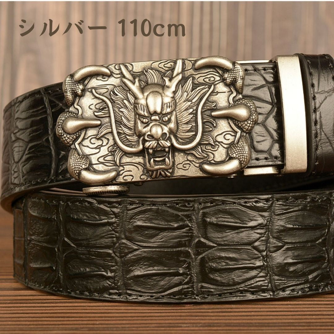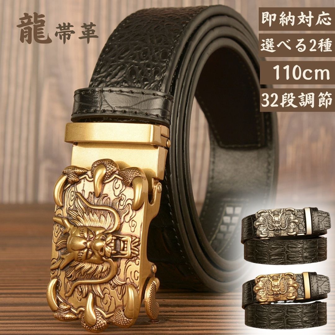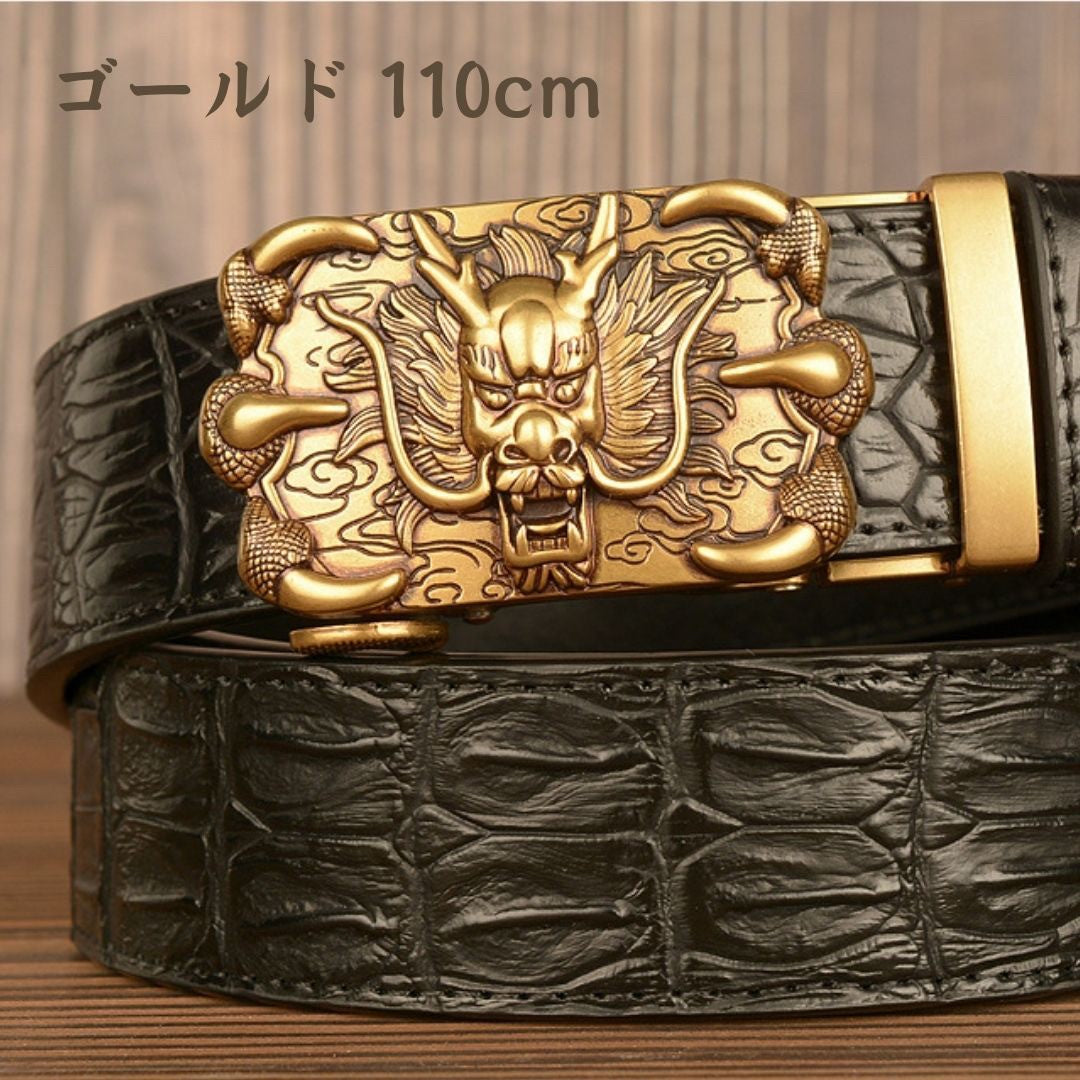 ベルト | ドラゴンデザイン スライド式合金バックル メンズベルト(ゴールド/シルバー、110cm)