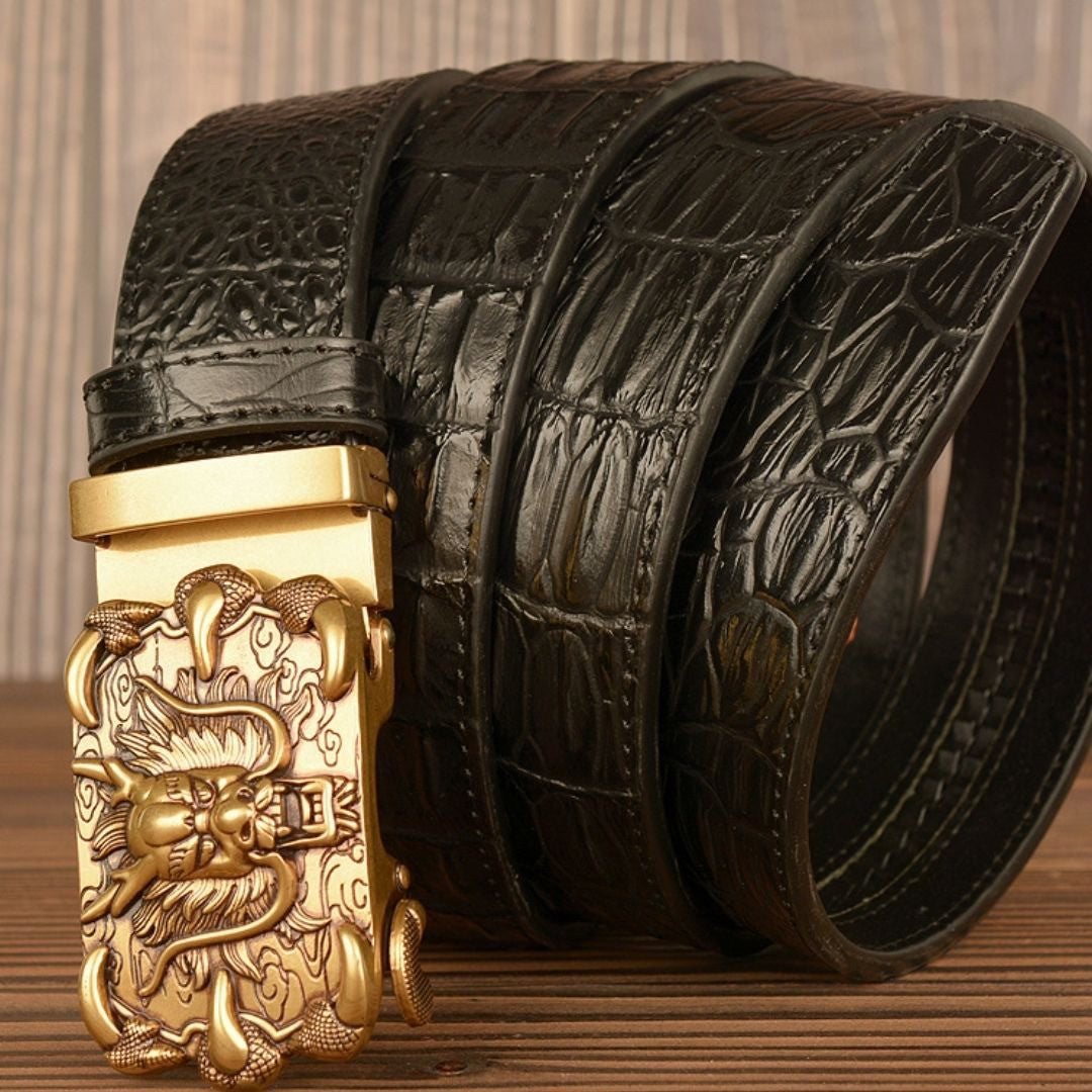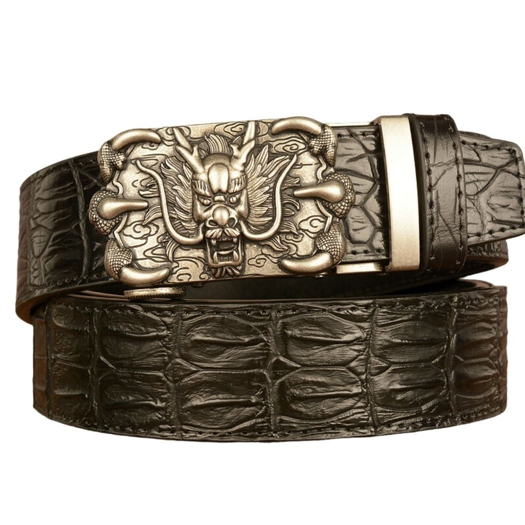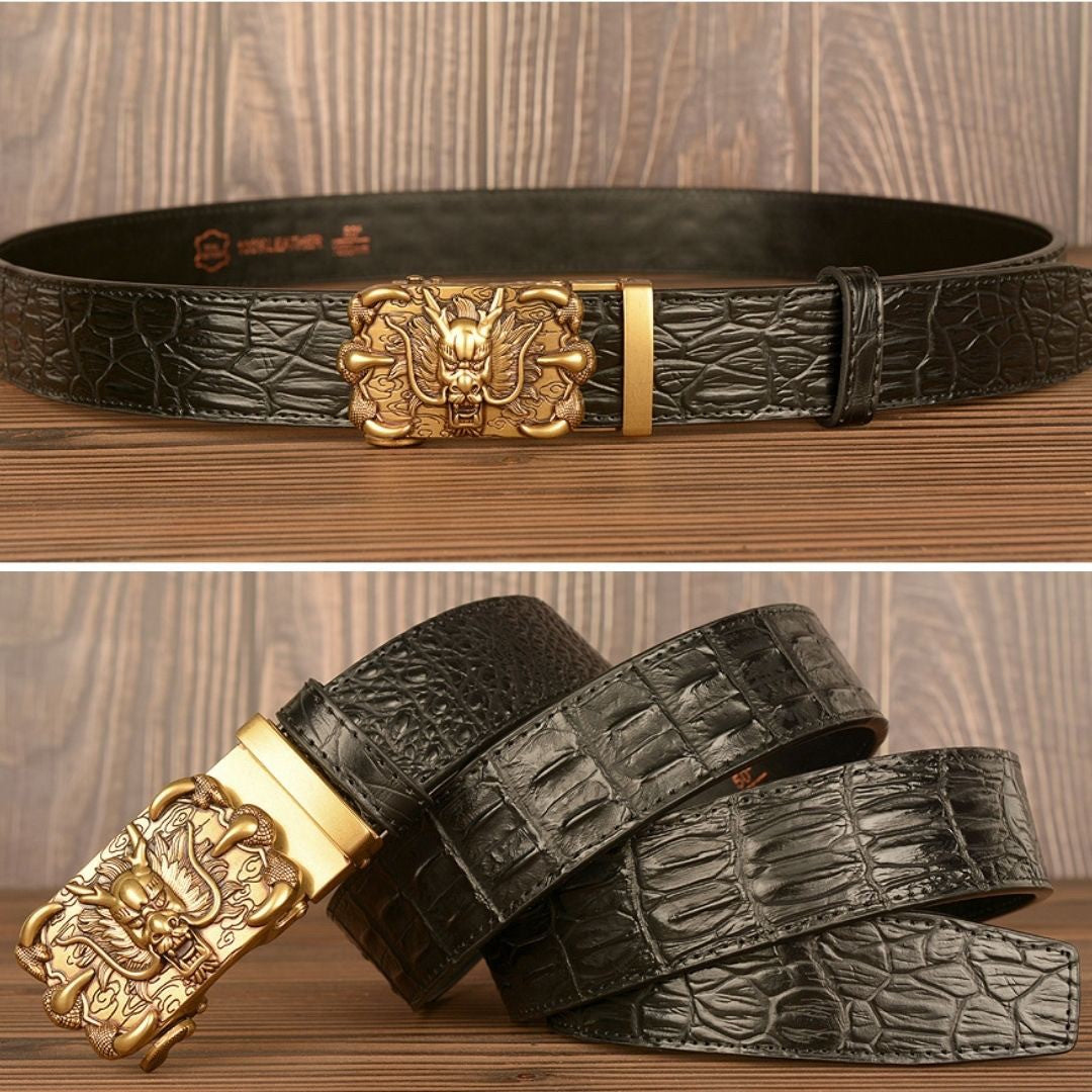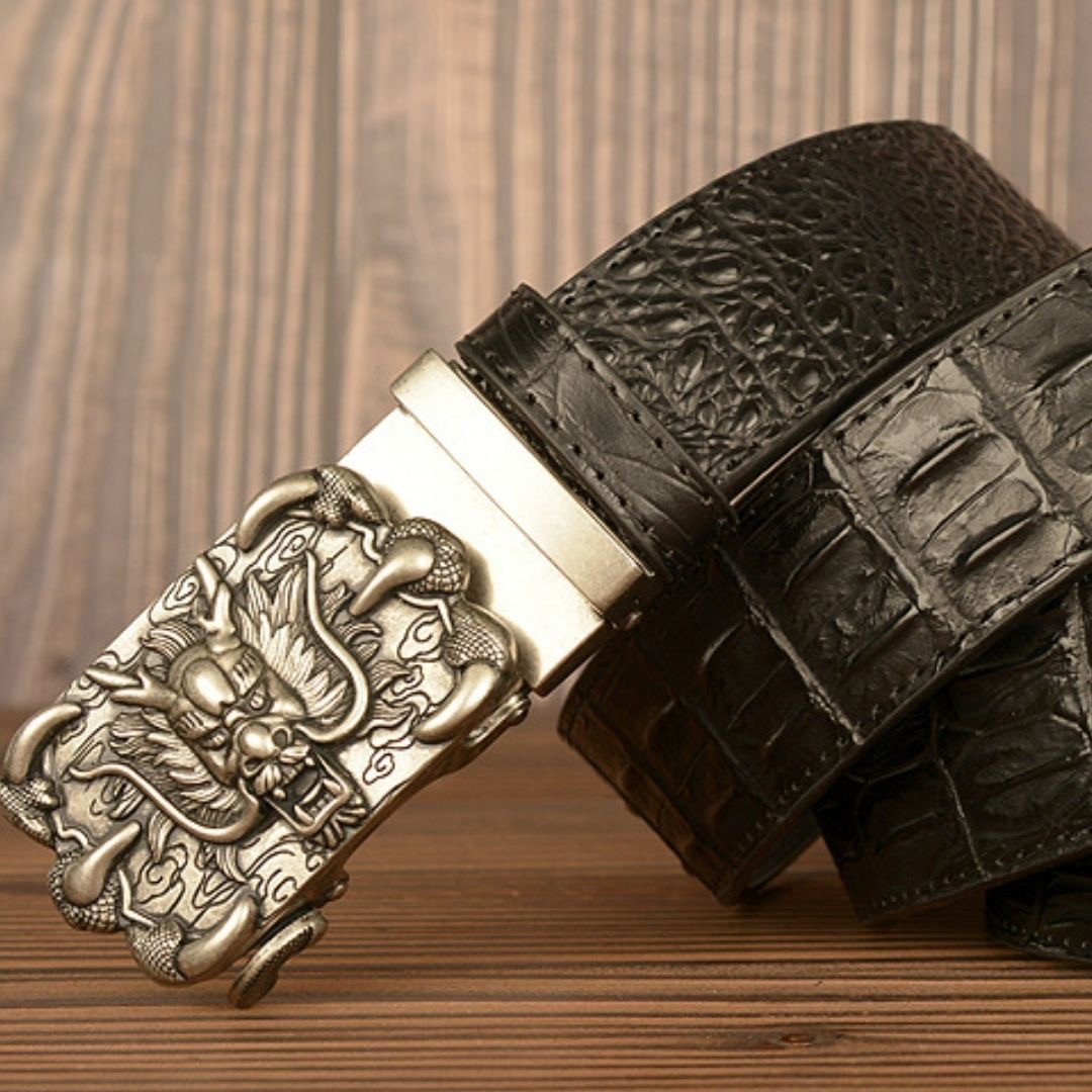 ベルト | ドラゴンデザイン スライド式合金バックル メンズベルト(ゴールド/シルバー、110cm)