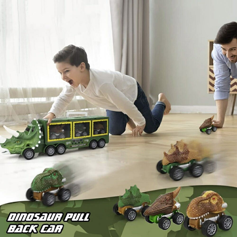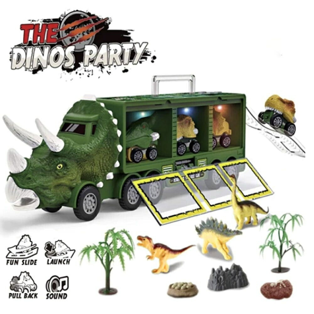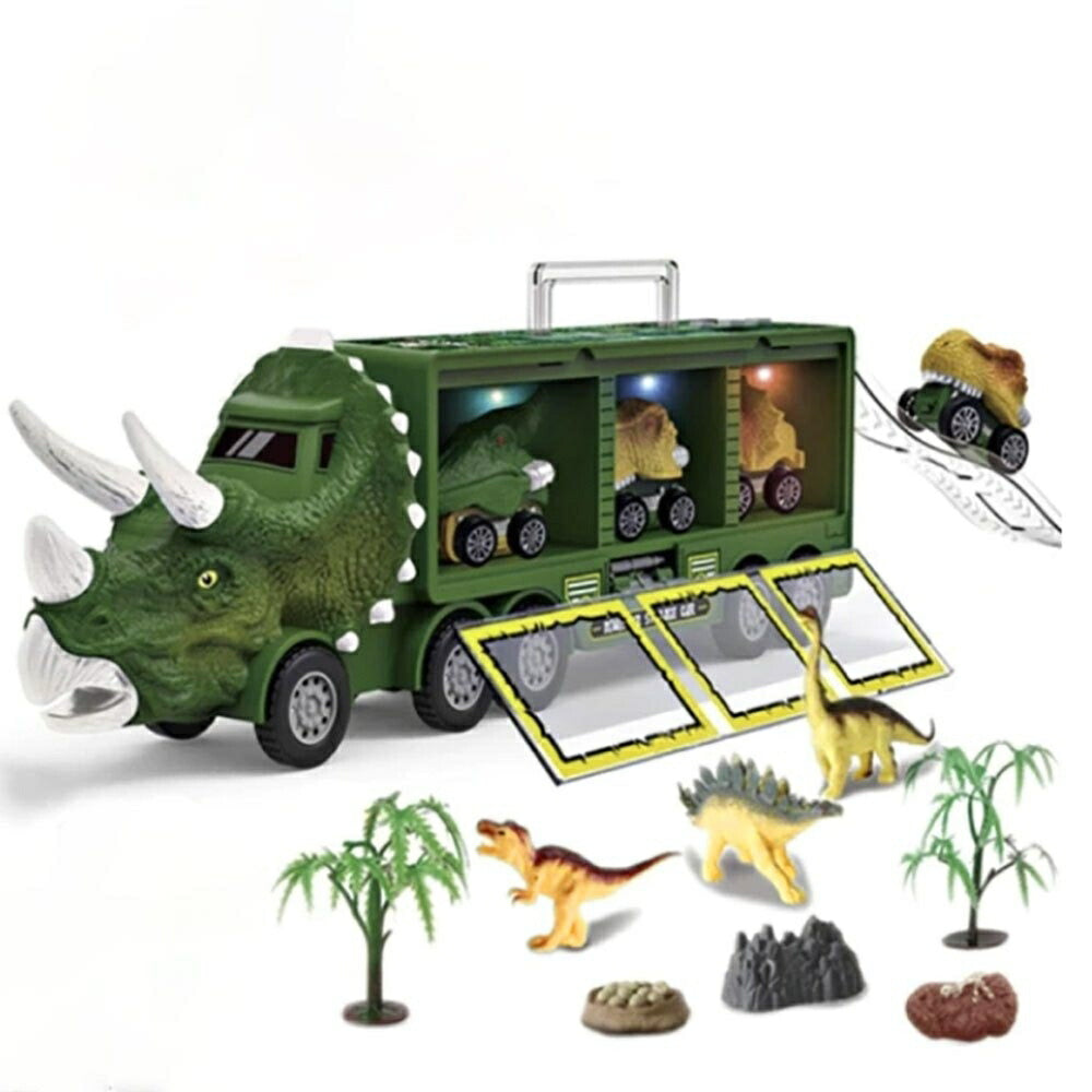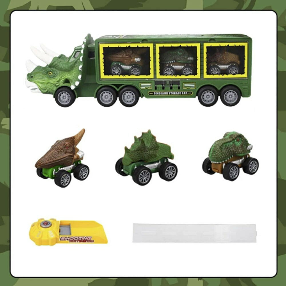 *トリケラトプストラックの中にティラノサウルス、プテラノドン、トリケラトプスの頭のミニカーが収納されております<br>
