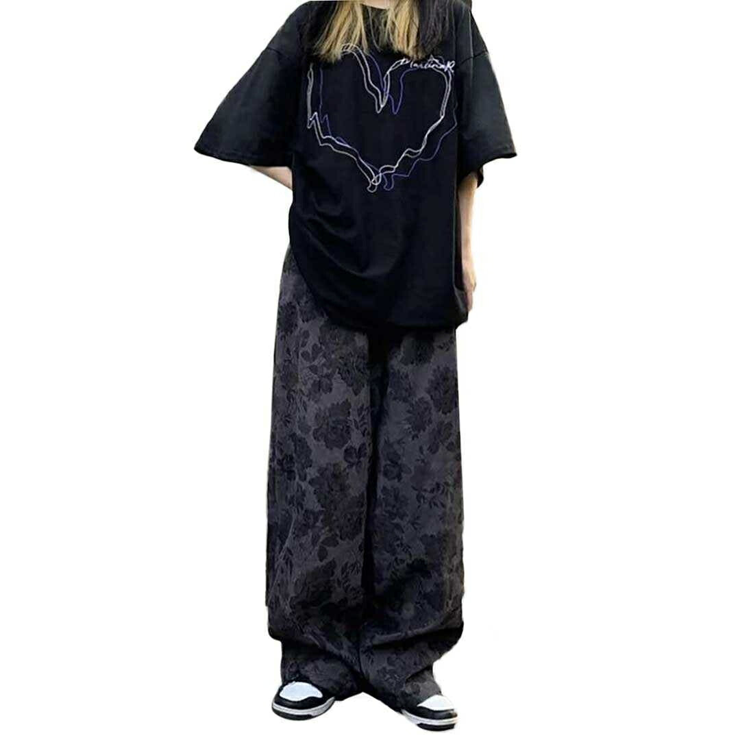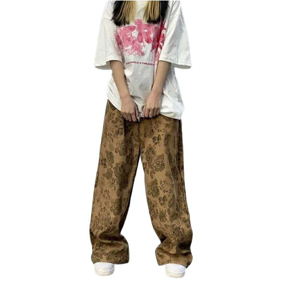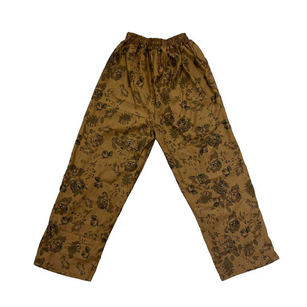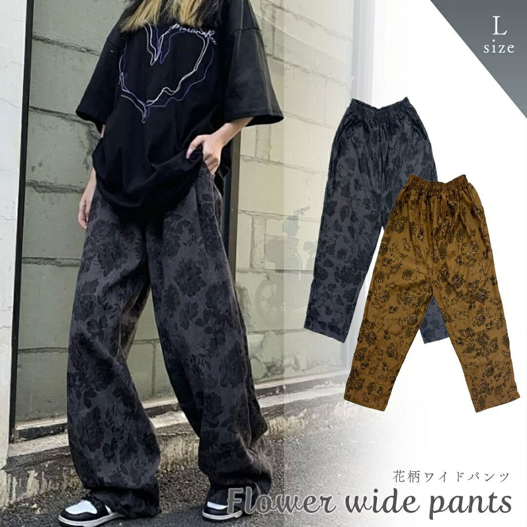 ボトムス 女性 | 花柄ワイドパンツ Lサイズ(ブラック/ブラウン)