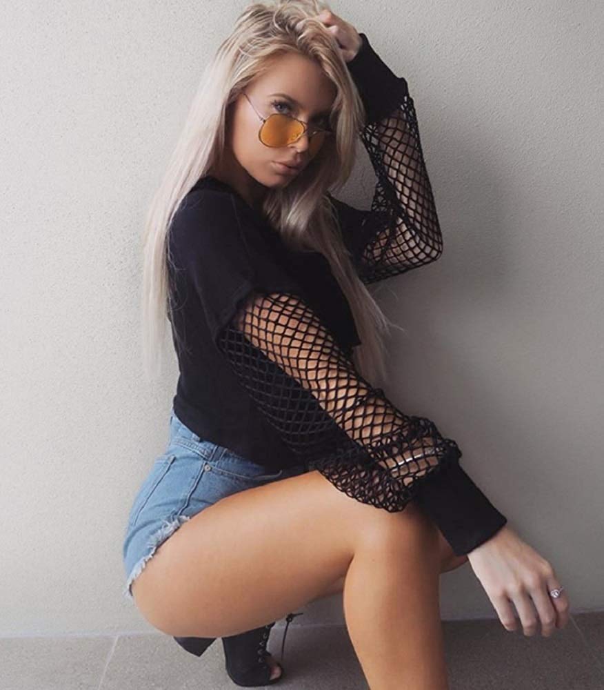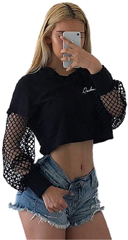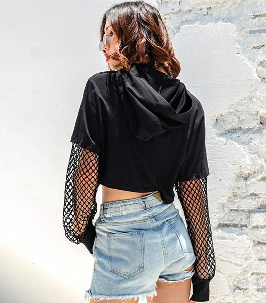 シャツ 女性 | HIPHOP ストリートダンス衣装 フード付き透け編みトップス