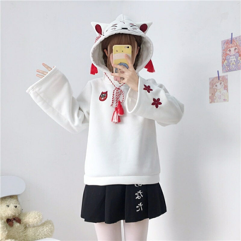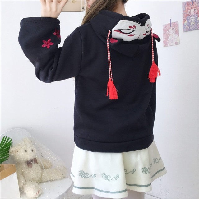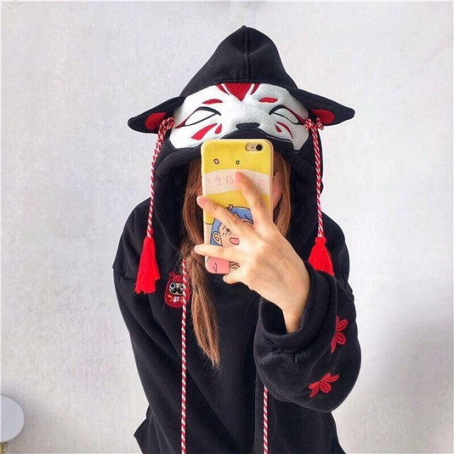 狐 きつね フードパーカー 紐付き ビッグシルエット 稲荷神社 伏見稲荷 いなり