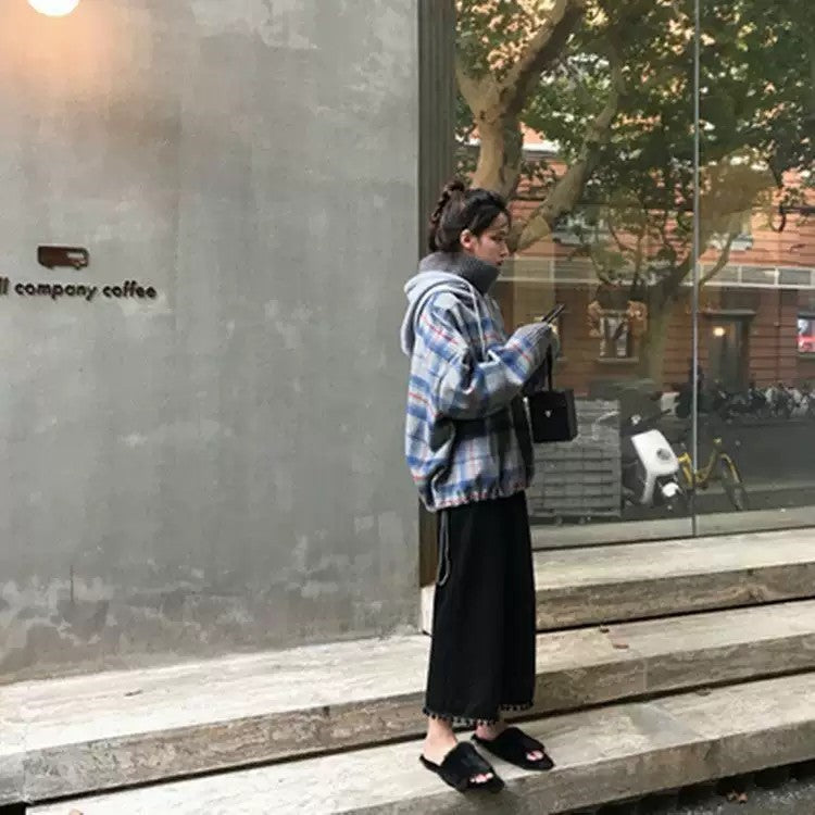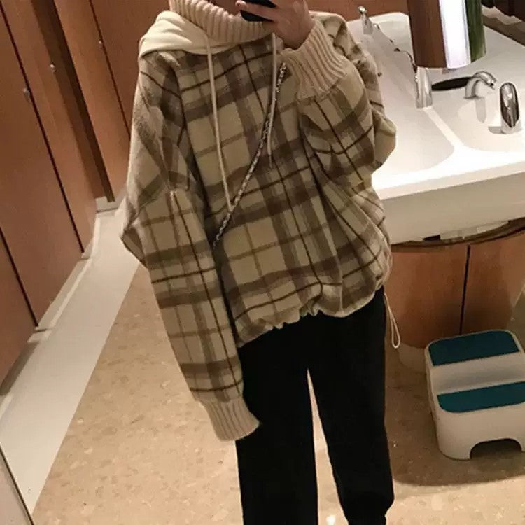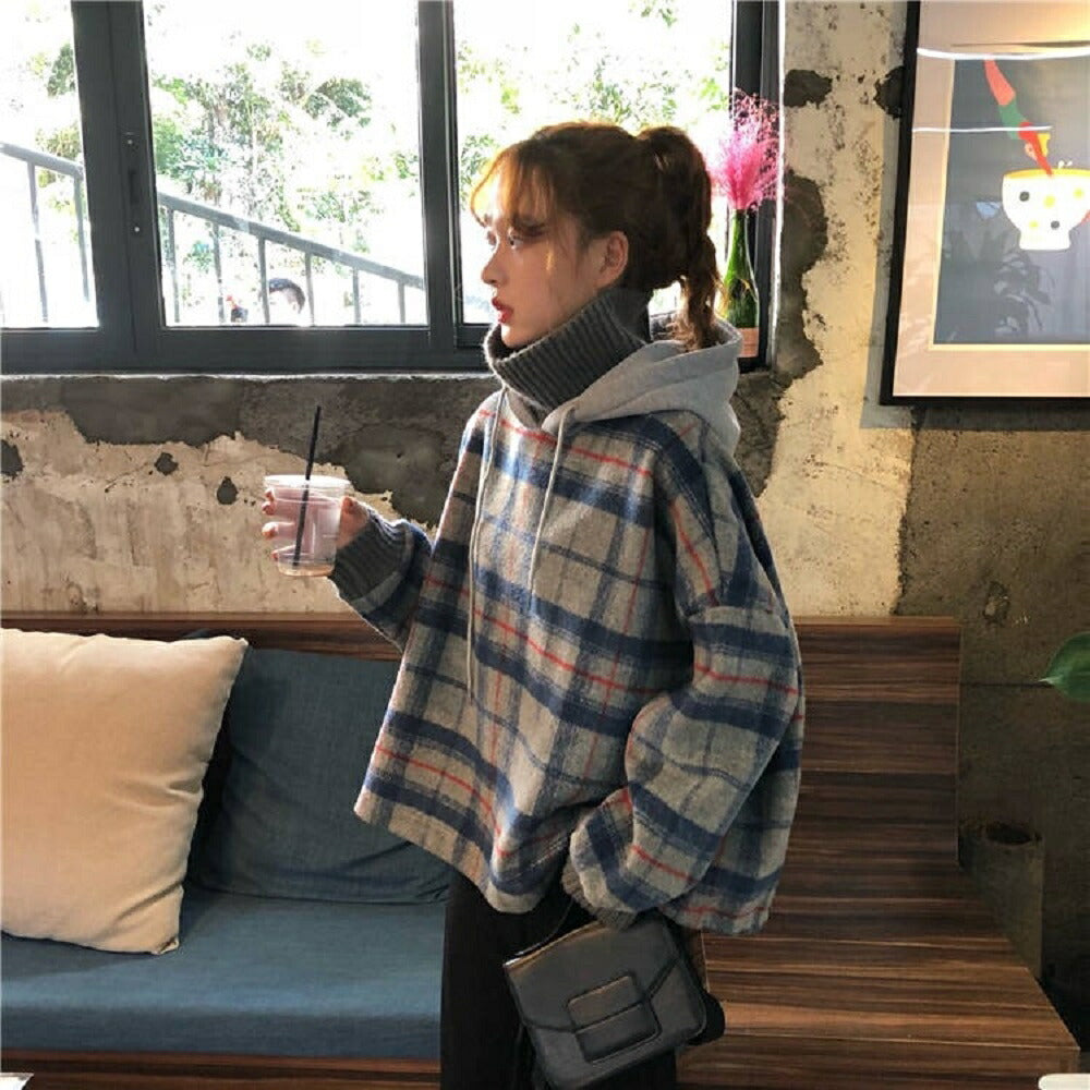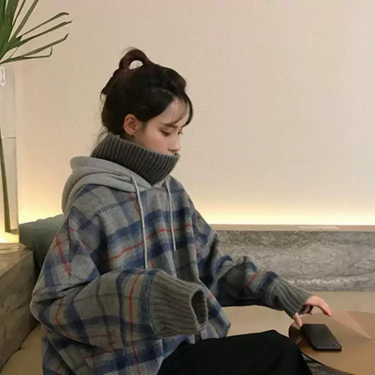 パーカー 女性 | ハイネック チェック柄 オーバーサイズパーカー