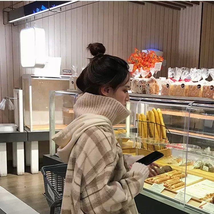 チェック柄 パーカー ハイネック タートルネック プルオーバー パーカー