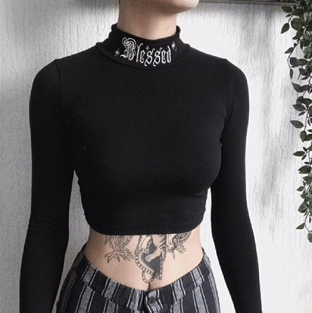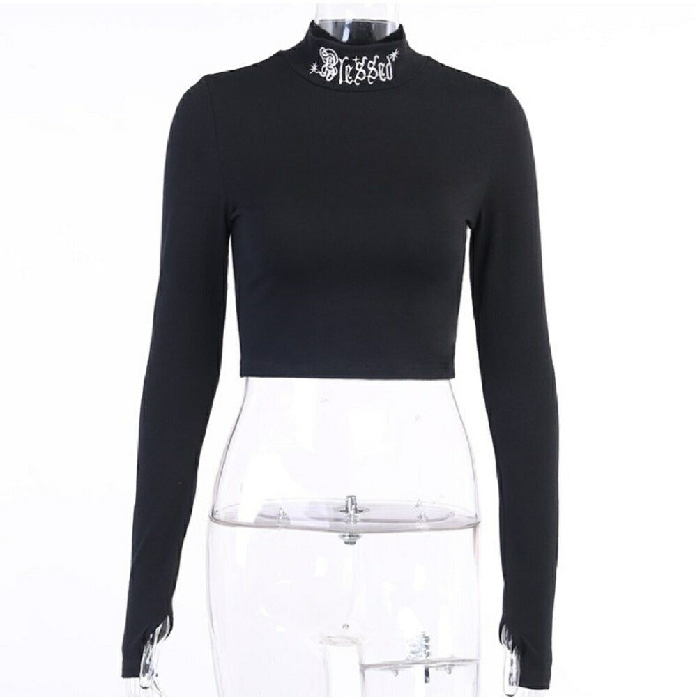 ハイネック部分のワンポイントの文字デザインがとてもクールで可愛いです