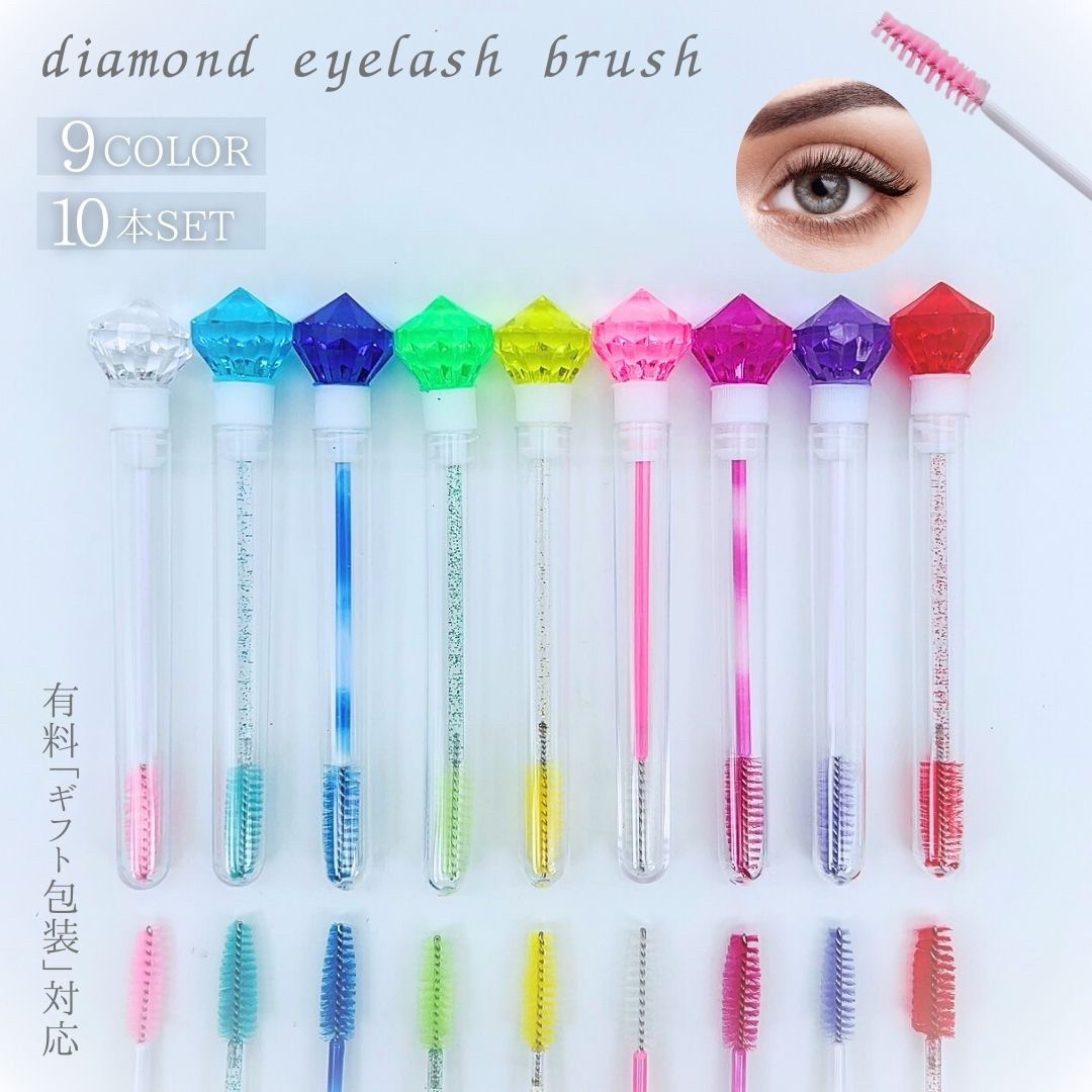 コスメティック | ダイヤモンドアイラッシュブラシ10本セット - 9色ピンククリアケース付き
