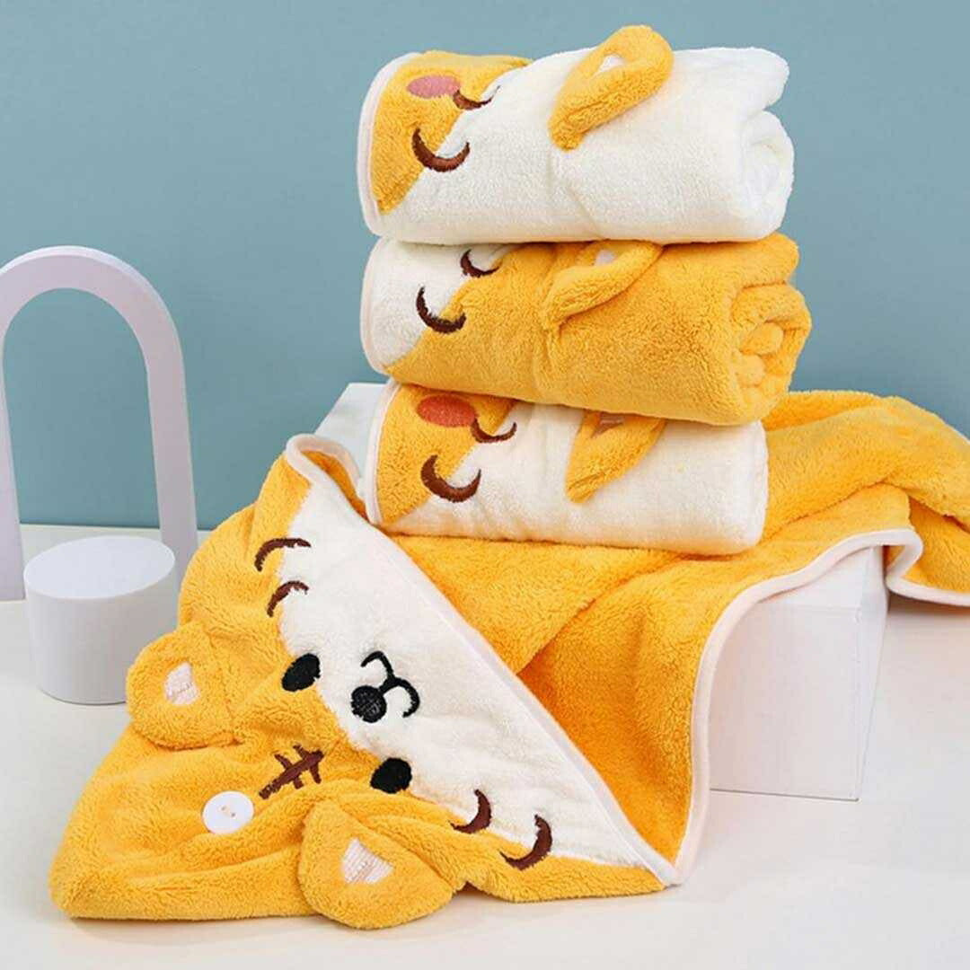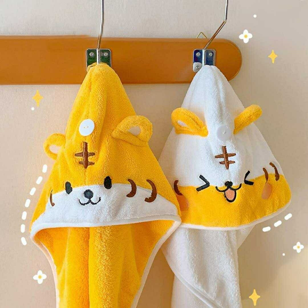 このタオルは、一般的なタオルと違い、速乾性や髪への負担軽減など特徴があり、可愛い虎モチーフでお部屋にもマッチするデザインです。