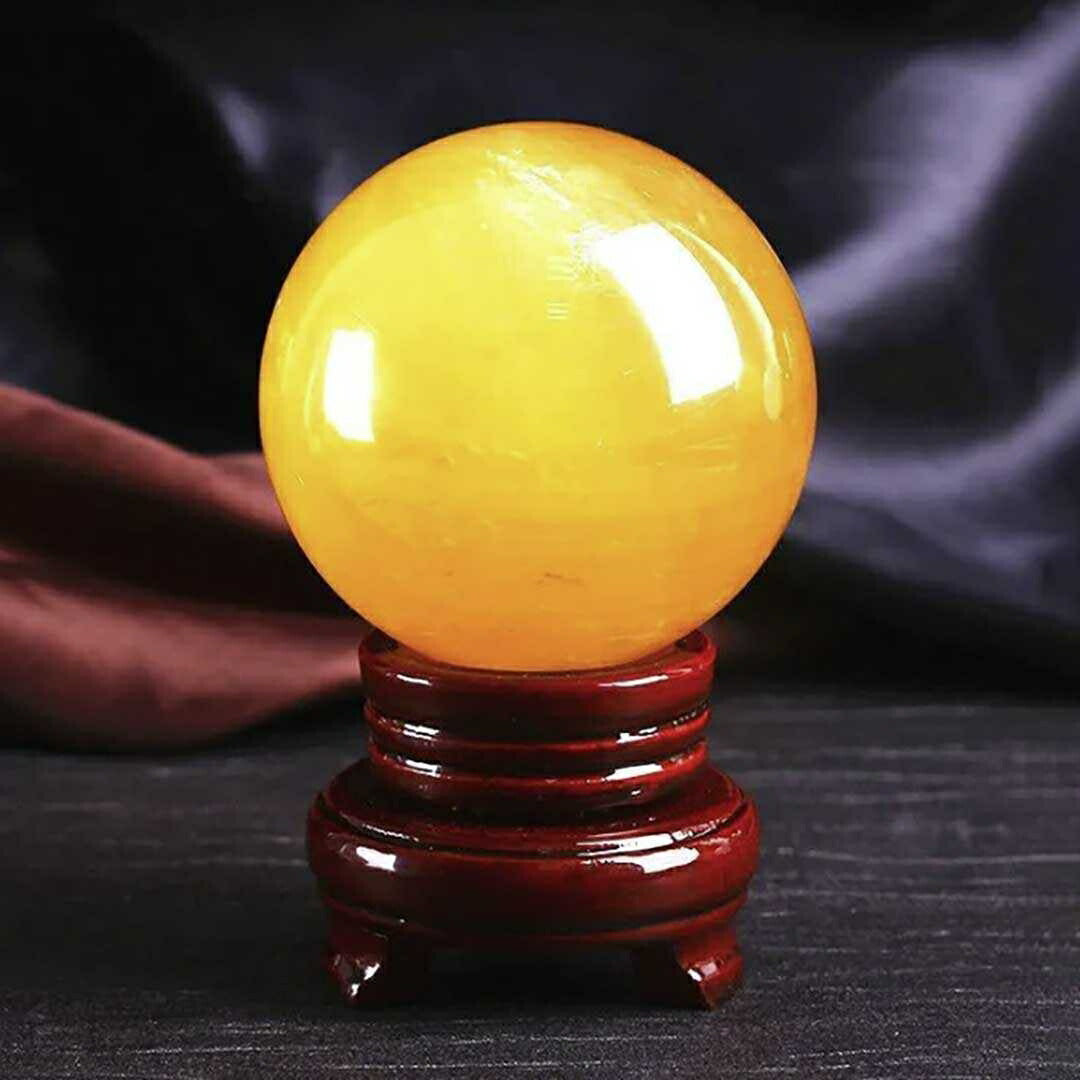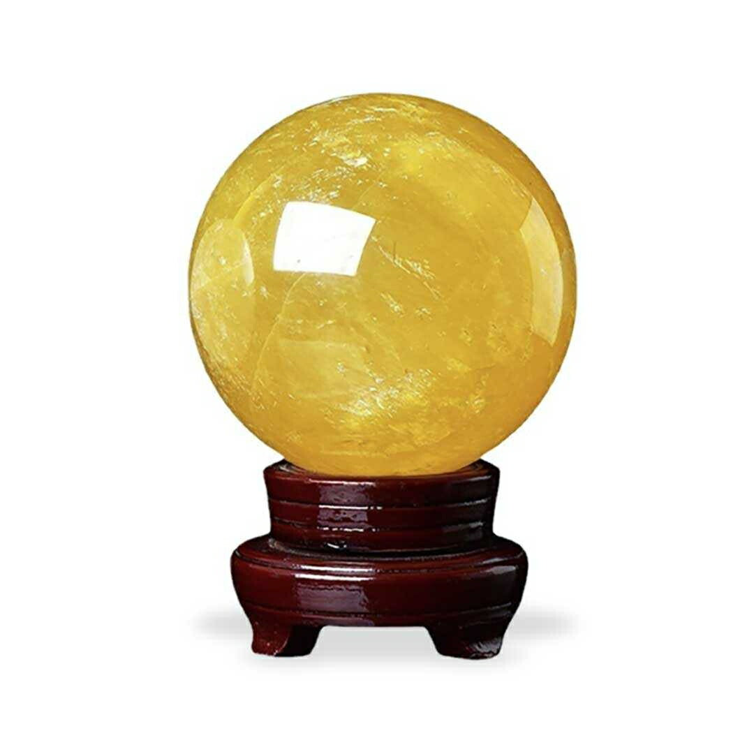 風水 インテリア | シトリン水晶球8cm 木製台座付き 開運風水インテリア