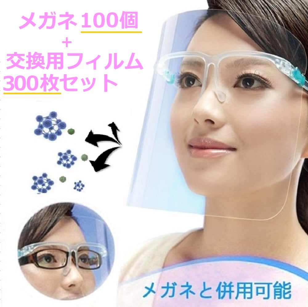 100+300 眼鏡1個に対してシールド3枚 交換用シールド フェイスシールド メガネ型 クリア 軽量 PC素材 軽量 透明シールド シールド取り換え可 防塵飛沫対策 簡単装着 フェイスガード お得 医療用 デンタル 透明 感染 飛沫感染 対策 感染予防 シールド クリア フェイスシールド フェイスガード 交換用フィルム キッチンフェイスシート 化粧や口紅が崩れない 衛生的 メガネタイプ 飛沫・花粉・塵・煙・油・ウイルスなど防止