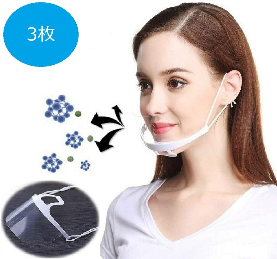マスク | 3枚セット 透明フェイスシールド 衛生用マスク