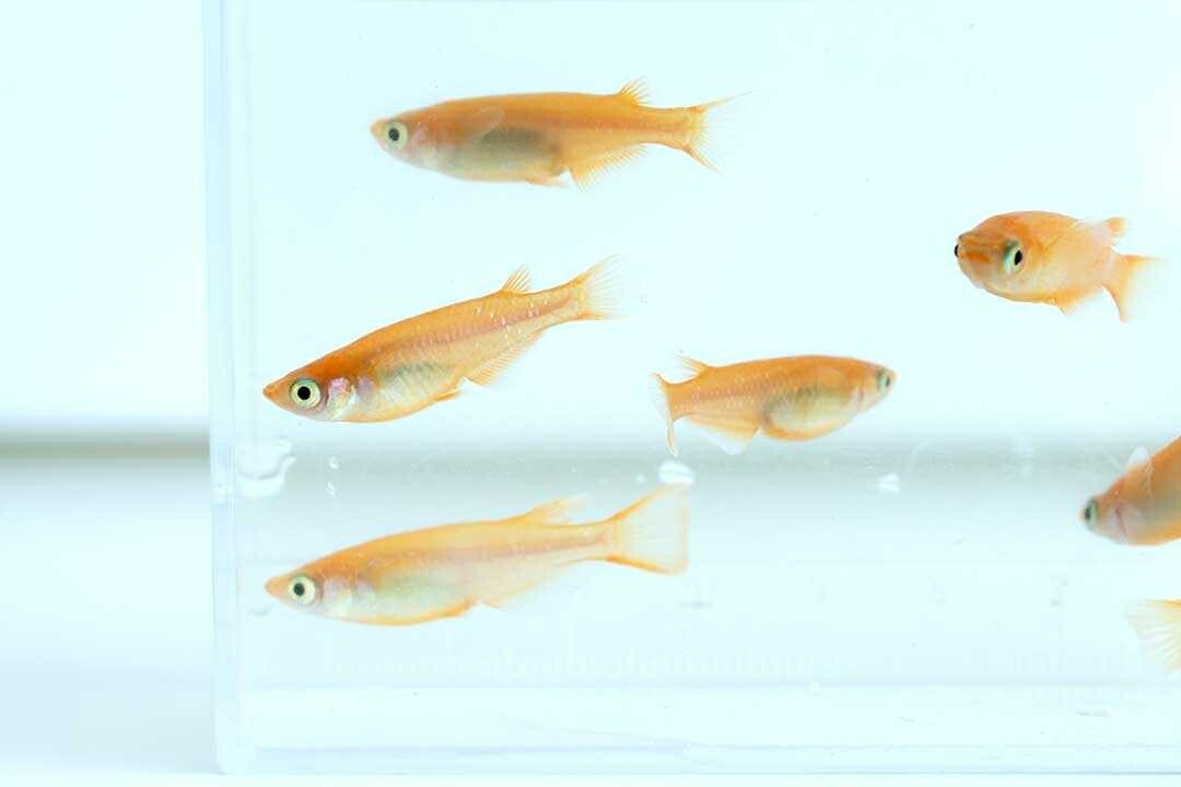 朱赤体色を持つメダカです