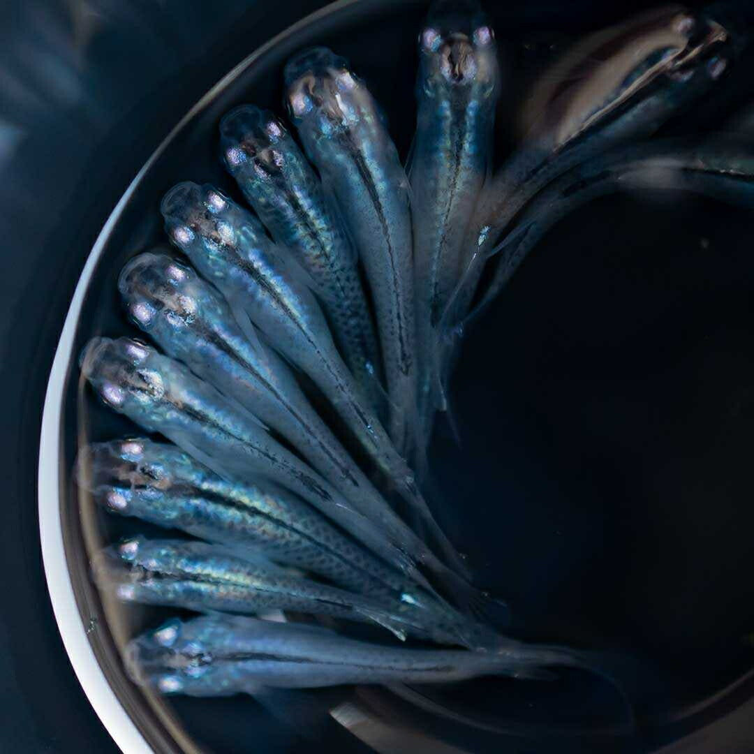 透明鱗性である事が重要で、マリンブルーメダカの魅力的なラメは透明鱗性の個体に発現します。 可愛らしい青体色と、青白く輝く強い光が特徴のメダカです。 体色固定率は90%以上で、安定して白体色と青ベースの個体が産まれてきます