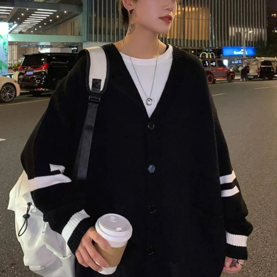 柔らかさと強度を両立した、ウール素材によるセーターボディ。ホワイトラインデザインもポイントです。加えて、ややドロップショルダー気味のオーバーシルエットで、今っぽいリラクシングな雰囲気を呼び込んでいるのも見逃せません。快適さもデザインも理にかなった1着は、通年ハズせないセーターとなりそうです