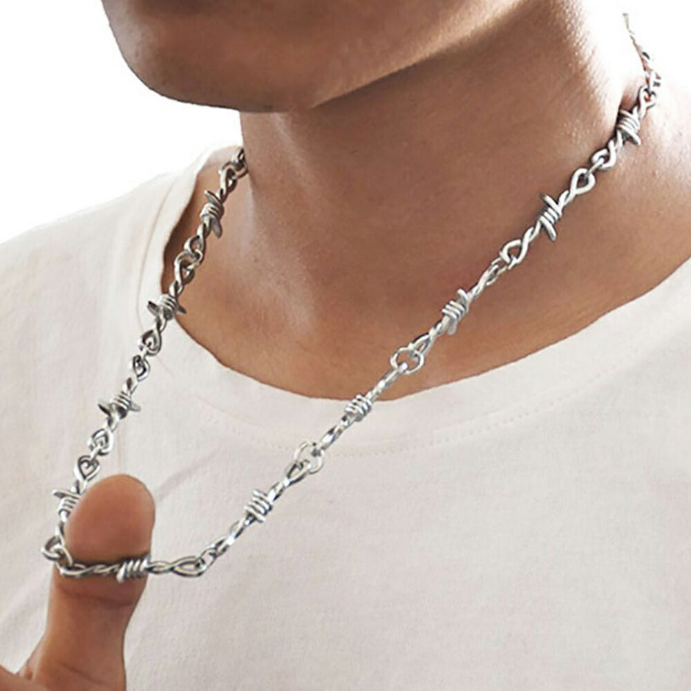 *こちらは有刺鉄線型のアクセサリーですので有刺鉄線ではありません。ですが先端は少し尖っておりますのでネックレス以外の用途では使用しないでください