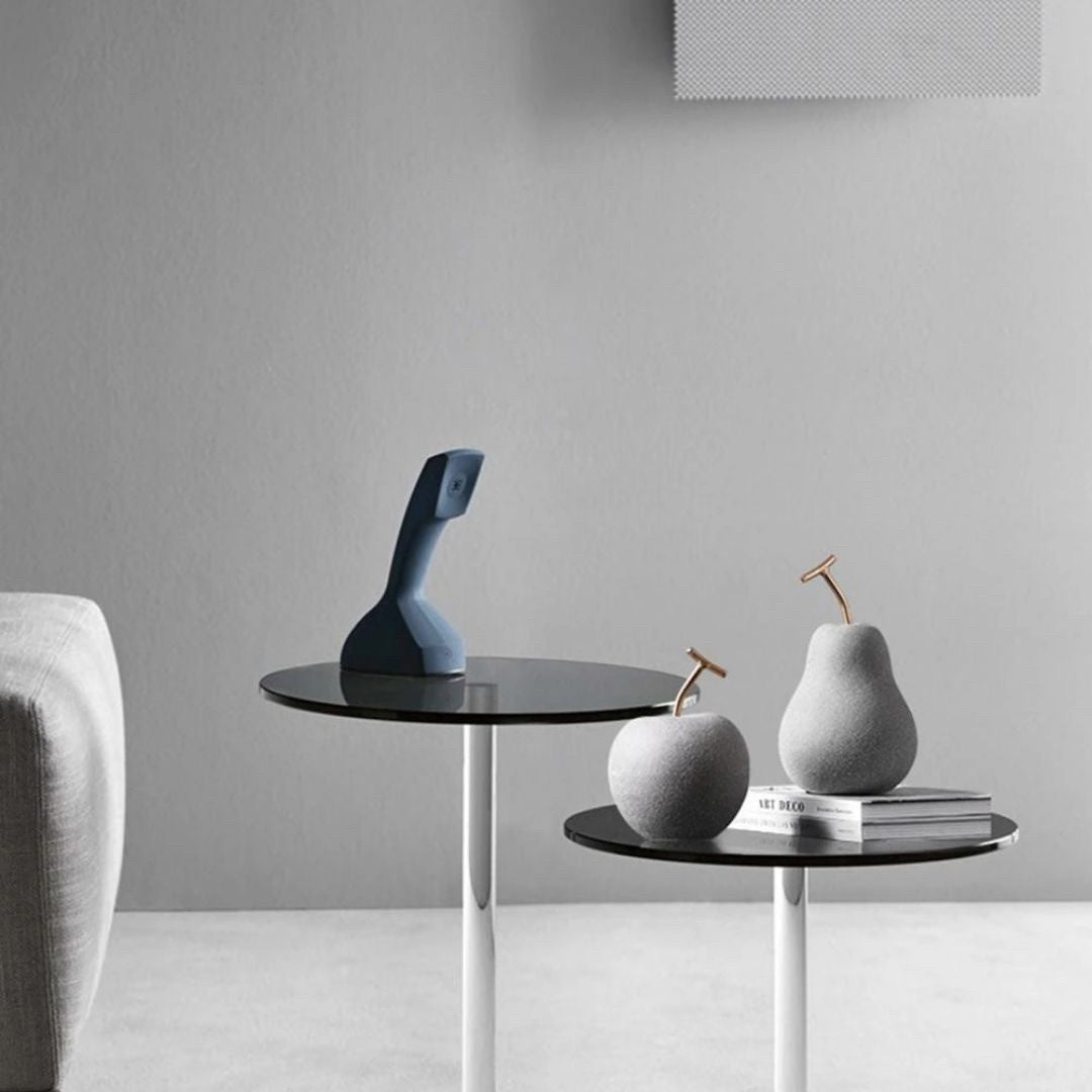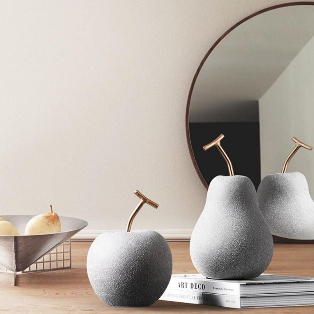 レトロ感の中にモダンさも併せ持つイギリスロンドンの骨董品のような雰囲気を出しております。クラウドグレーのカラーで主張しすぎず部屋に溶け込みます。大きめのサイズで重厚感たっぷり。りんごと洋梨のオブジェは個性的で知的なイメージを与えます