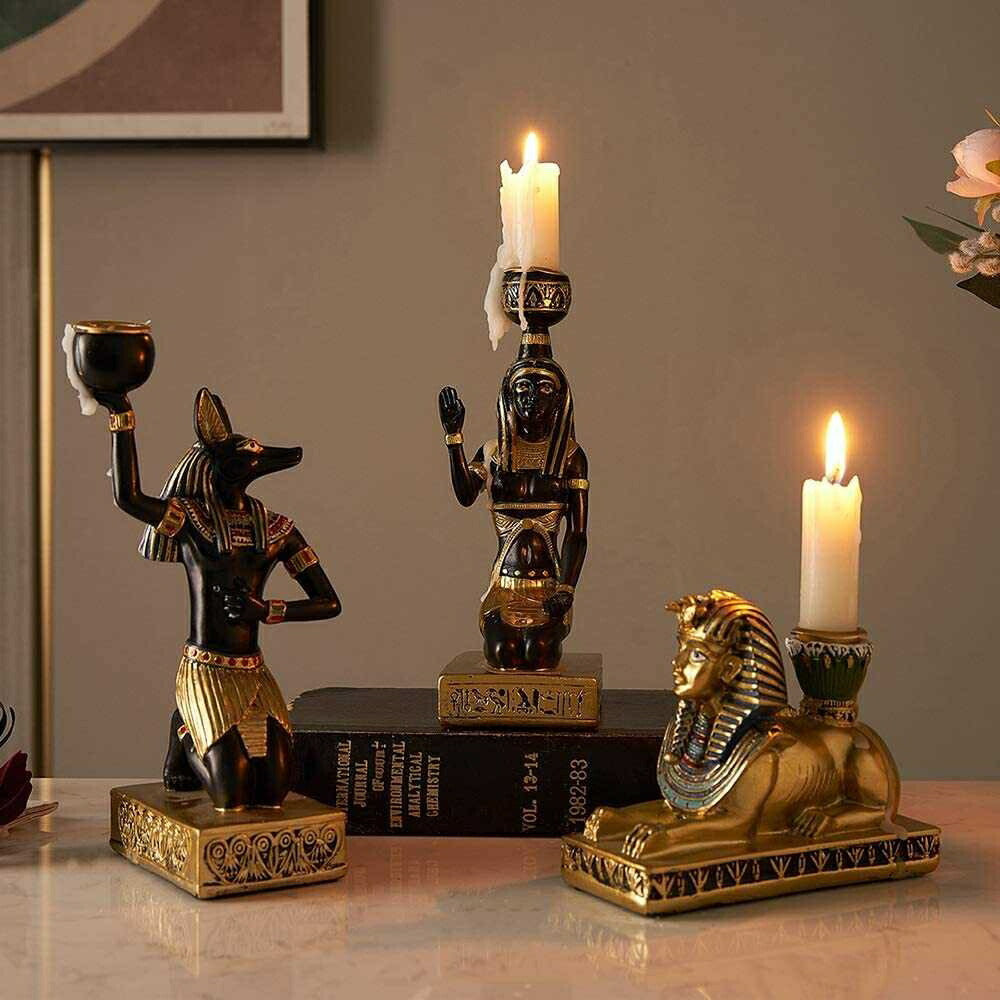 インテリア オブジェ | エジプト神話インテリア キャンドルスタンド3個セット【ファラオ・アヌビス・スフィンクス】