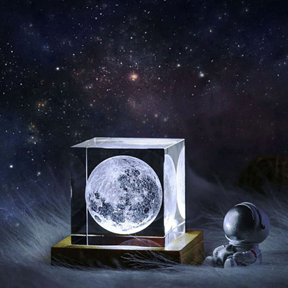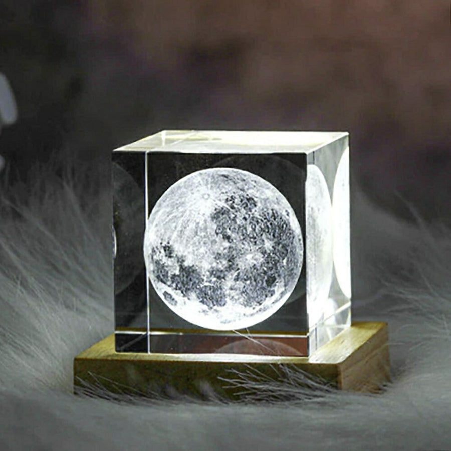 インテリア オブジェ | 3Dクリスタル月オブジェ LEDライトアップ付き