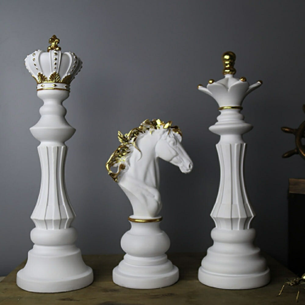 インテリア オブジェ | チェス駒 デザイン置物 - ナイト・キング・クイーン【ブラック/ホワイト】【アンティーク調仕上げ・微細な塗装ムラ等あり】