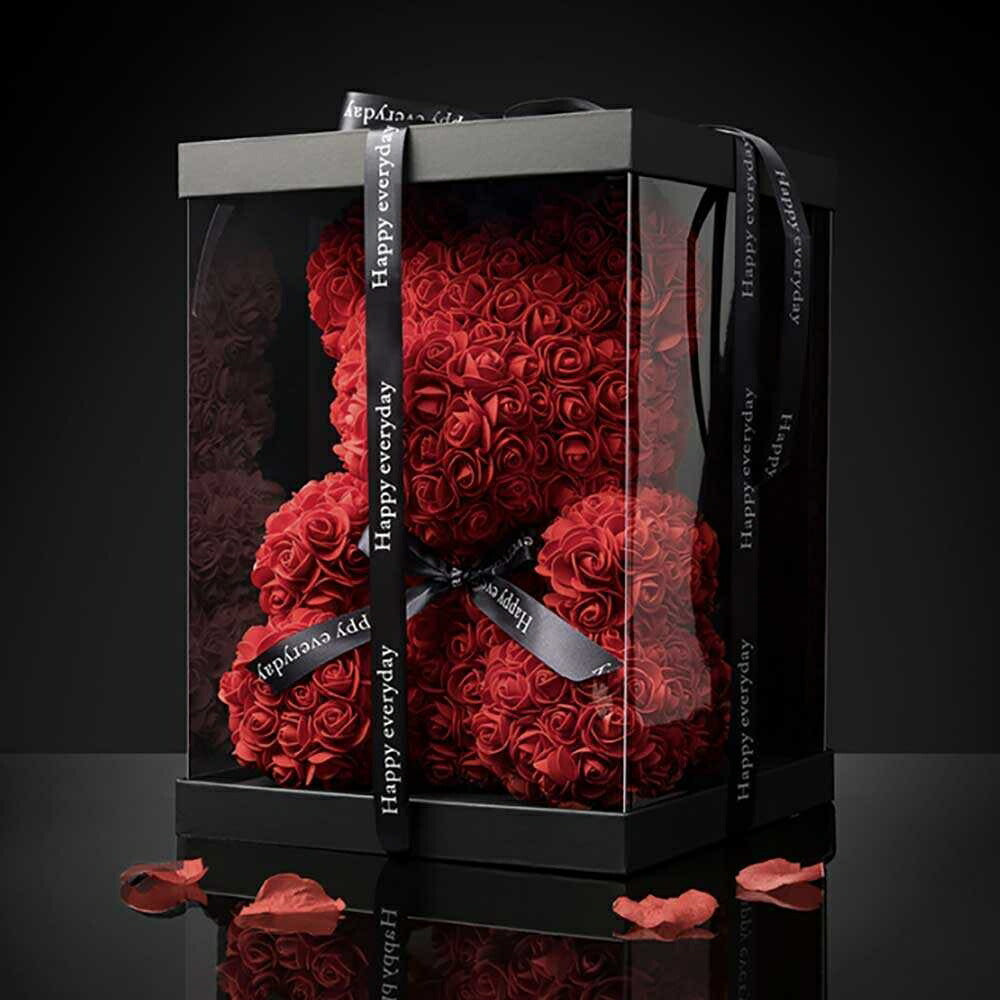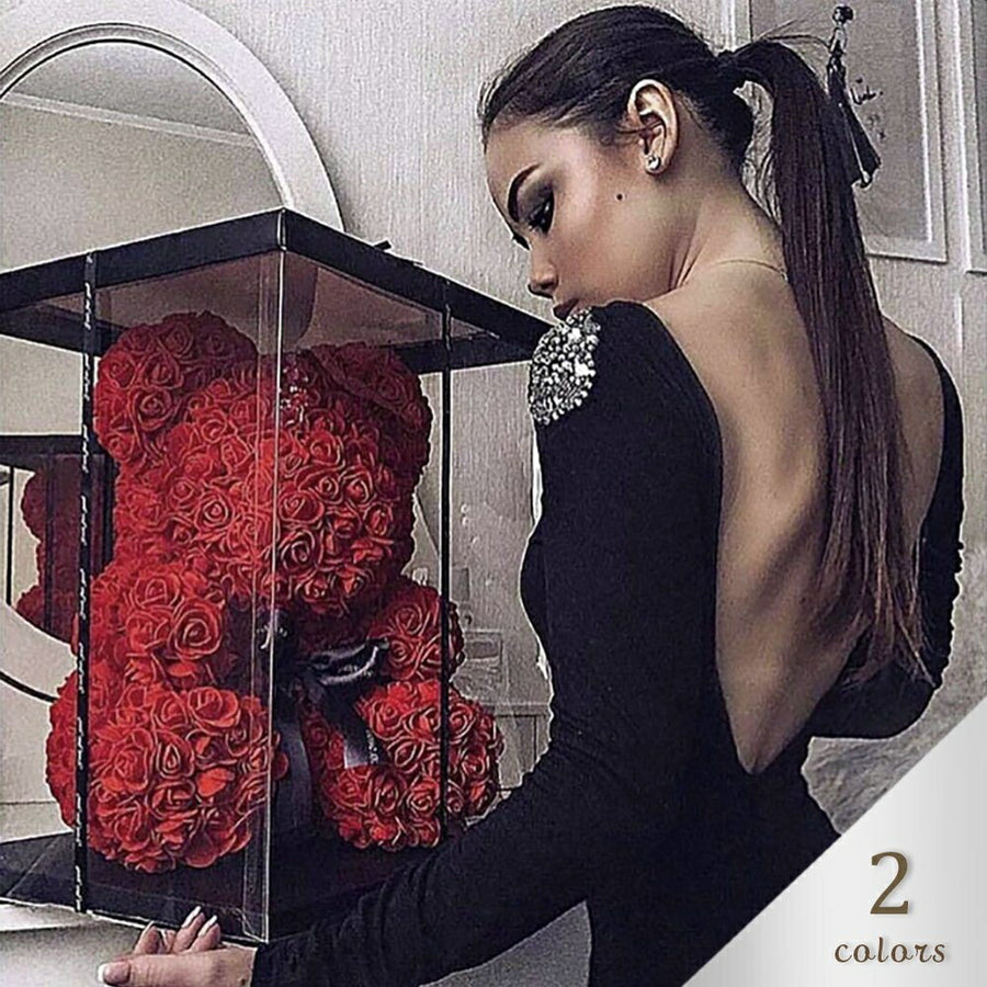 インテリア オブジェ | LEDライト付きプリザーブド薔薇テディベア - レッドorピンク