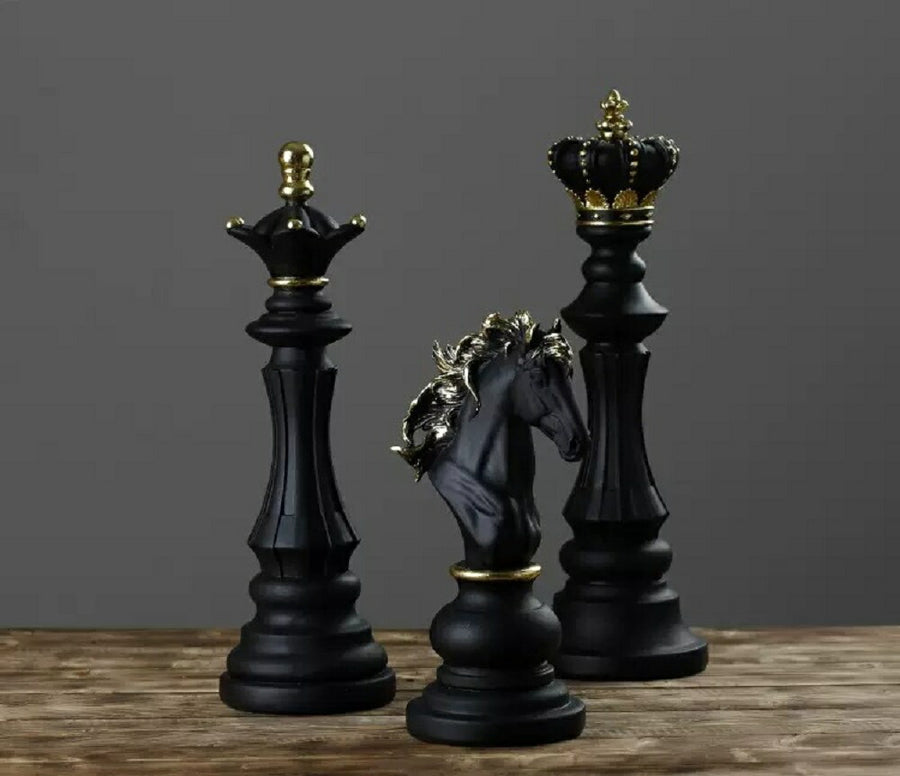 インテリア オブジェ | チェス駒 置物セット【ナイト・キング・クイーン】【アンティーク調仕上げ・微細な塗装ムラ等あり】