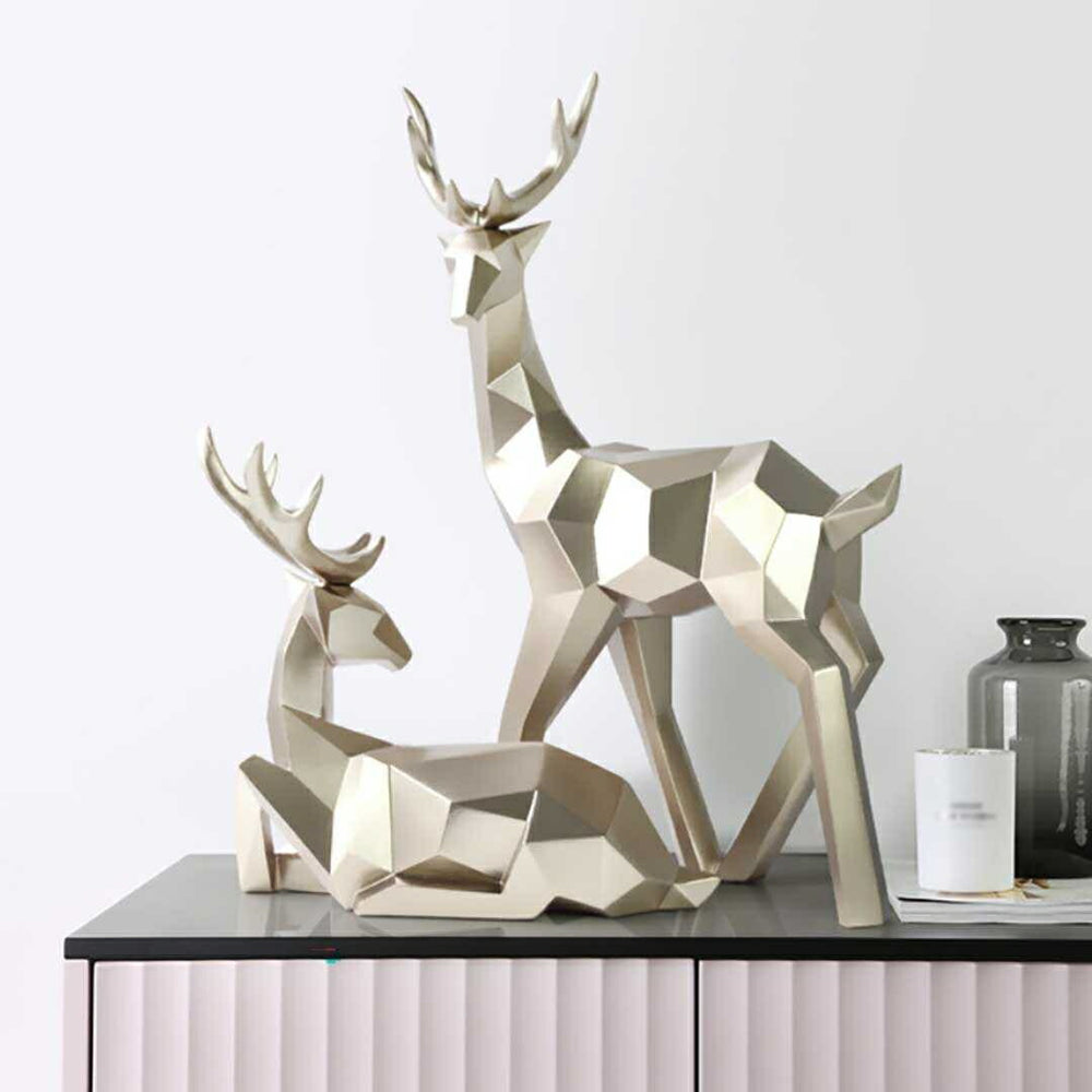 インテリア オブジェ | ゴールド鹿の置物 2体セット - アンティーク風デザイン