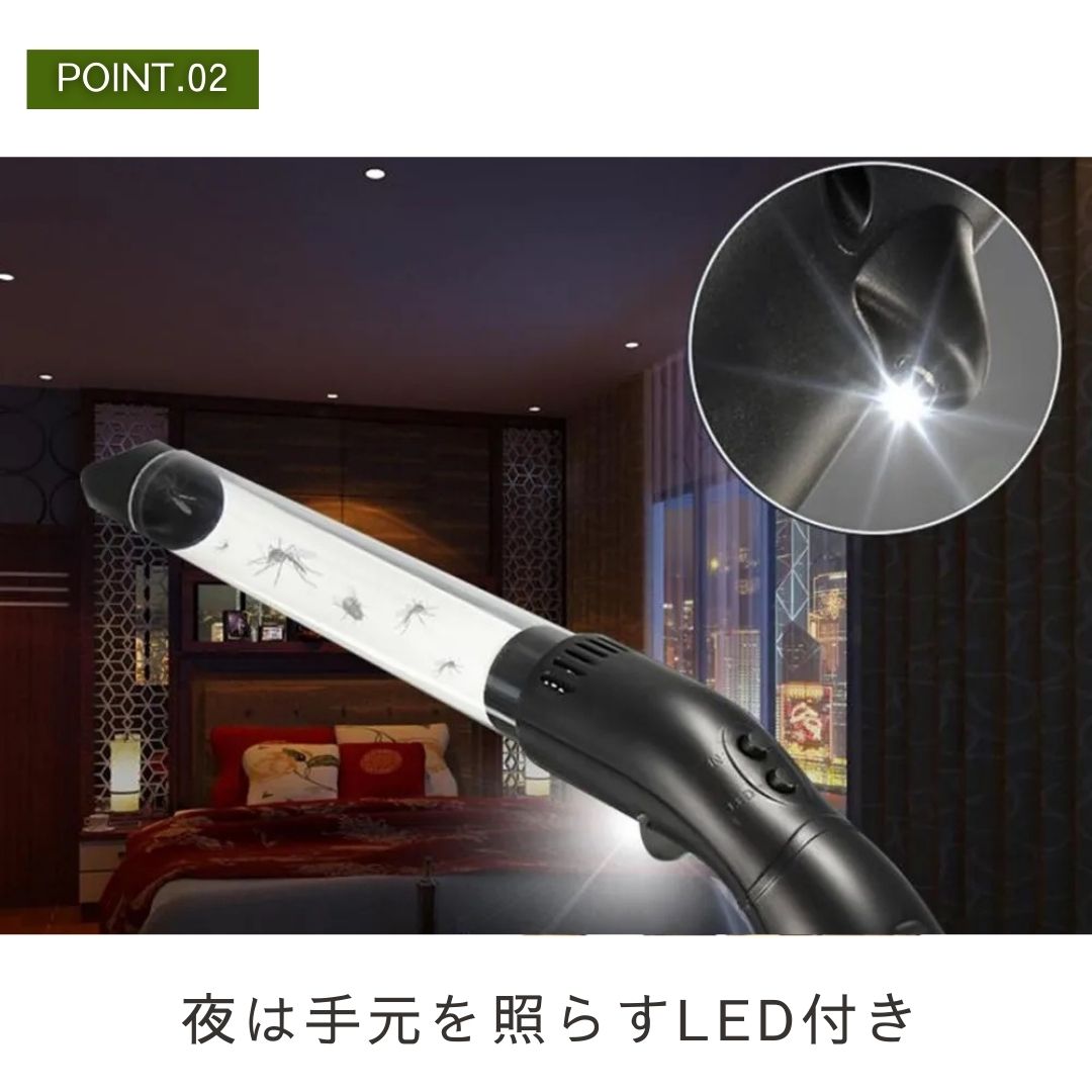 LEDライト付きなので夜間や家具の隙間などの暗い場所でも逃げた虫を見逃しません!