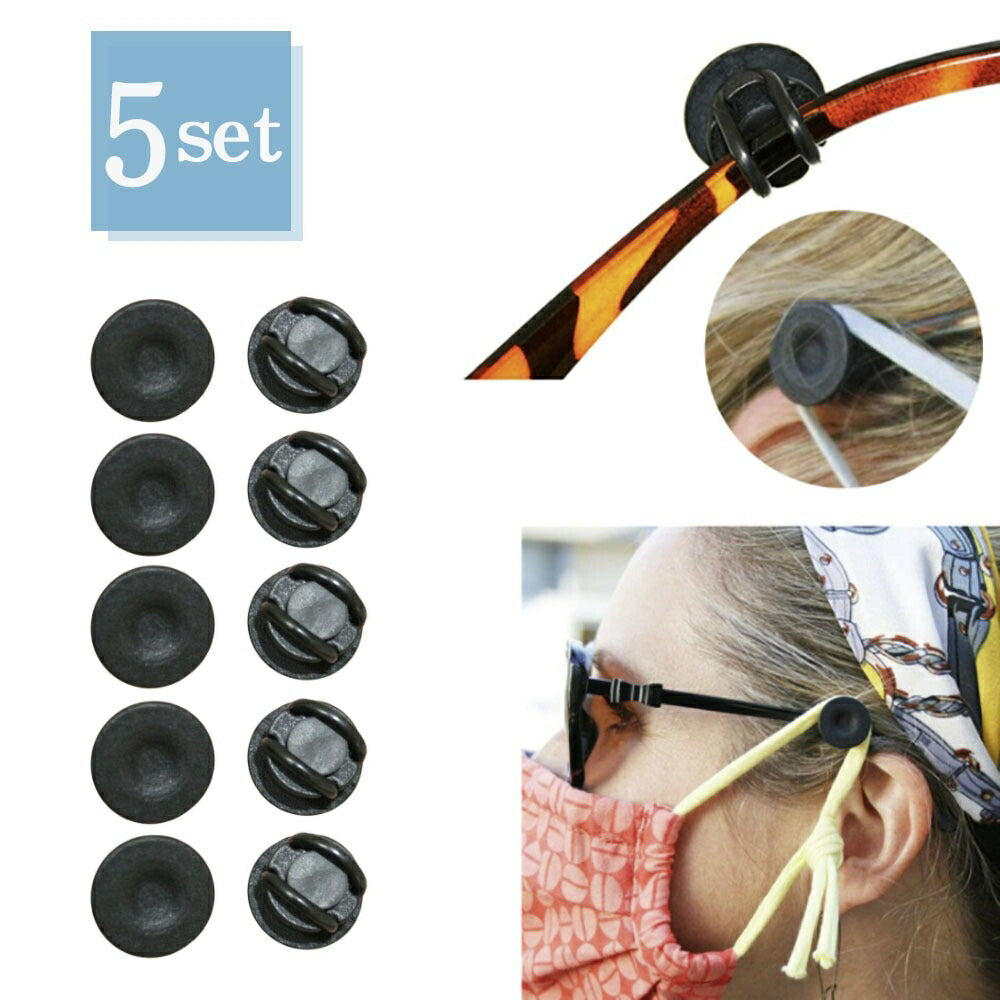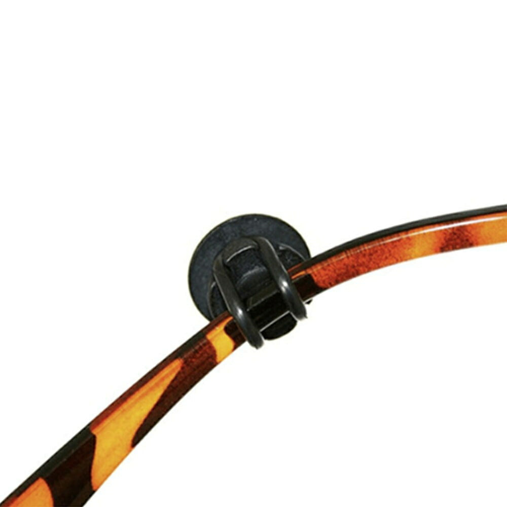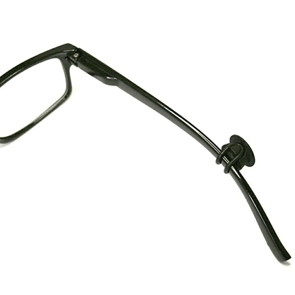 *ボタン状の一番大きな部品をメガネフレームの外側に当て、専用輪ゴムでフレームを挟み込むように固定します。その後ボタン状の部品の真ん中の穴に小さなボタン状の部品をはめ込みます<br>