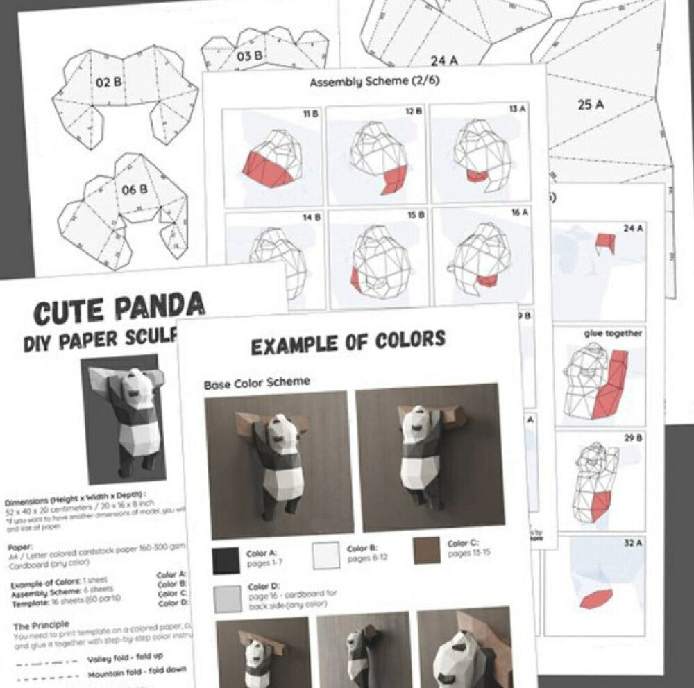 玩具 | パンダ 3D折り紙キット - 手作り壁飾り