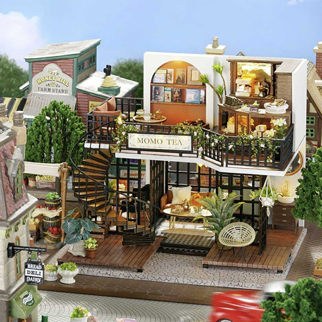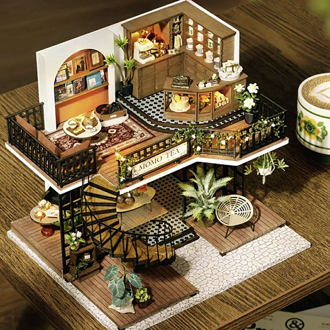 ミニチュアの1/24スケールのドールハウス手作りキットです。イギリスの景色にスッと溶け込むティーハウスのドールハウス。ゆったりした席間隔が優雅。たくさんのティーセットも見ごたえ抜群