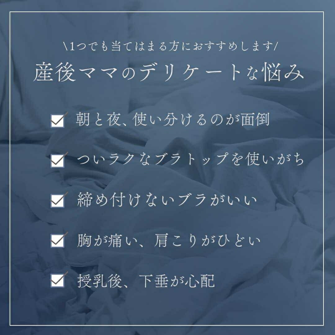 産後のバストは約2サイズもアップします。ホールド力の弱いブラトップや合わない下着を使っていると、下垂の原因になってしまいます。