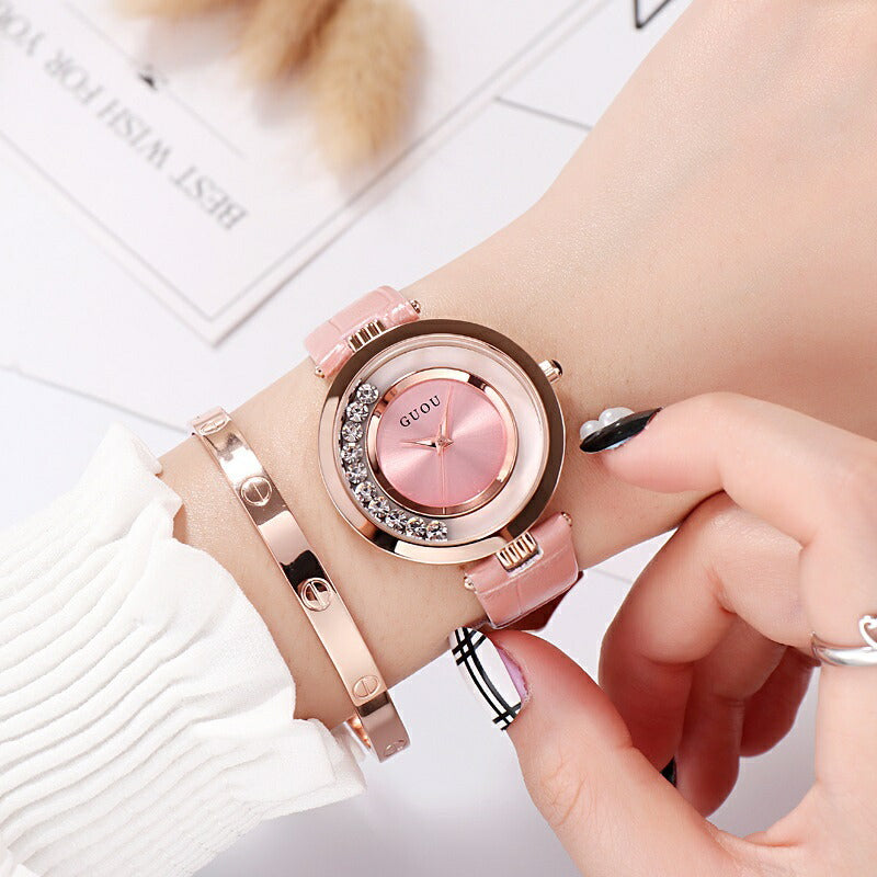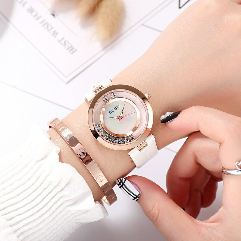 腕時計 | GUOU エレガント ラインストーン 腕時計 - ホワイト/ブラック/ピンク